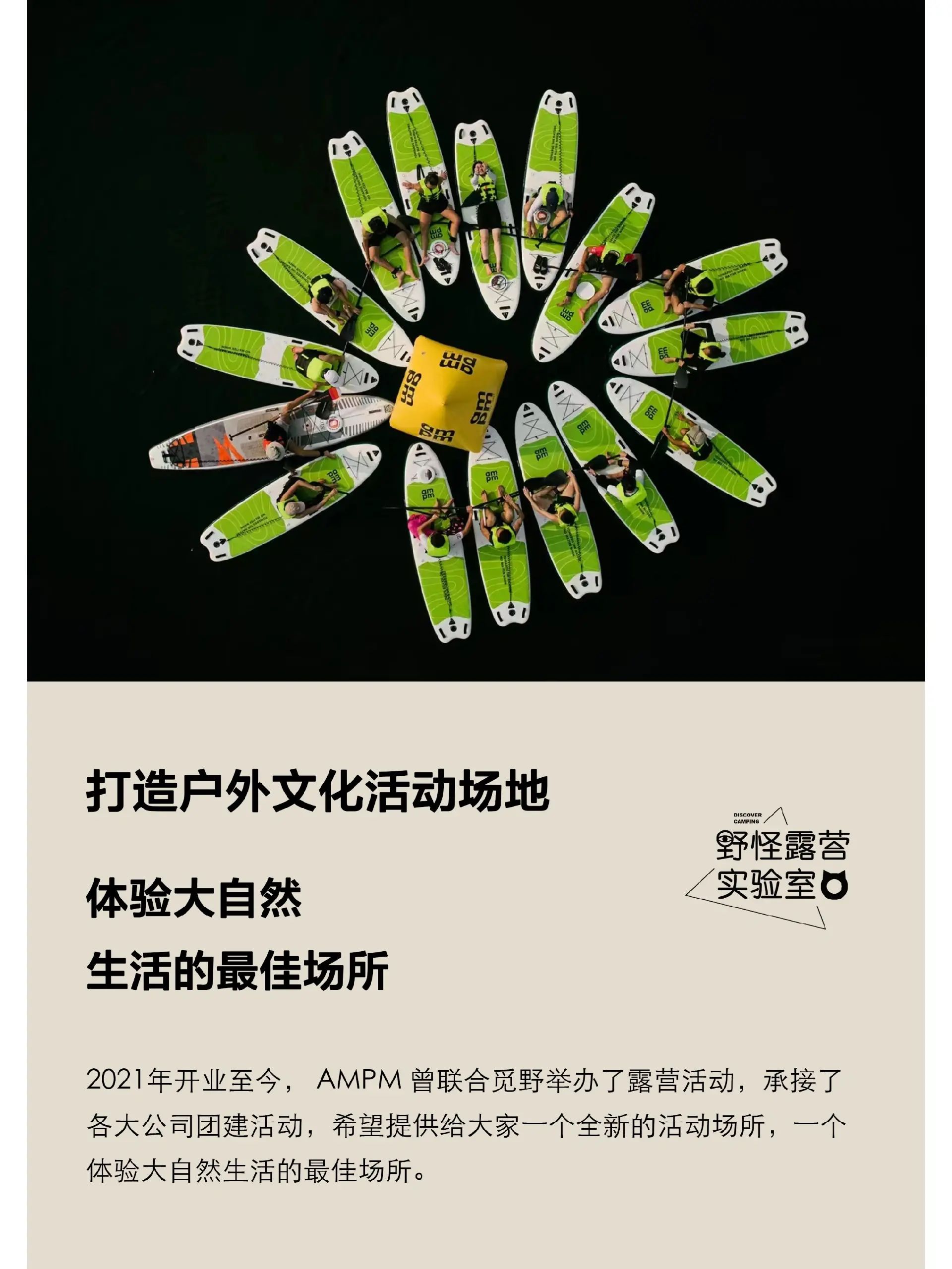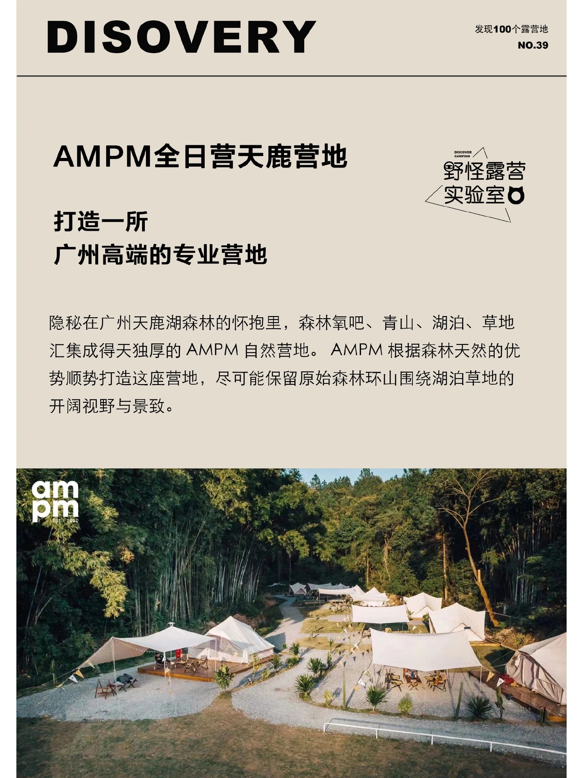 选址在广州天鹿湖森林,森林氧吧、青山、湖泊、草地汇集成得天独厚的AMPM自然营地。