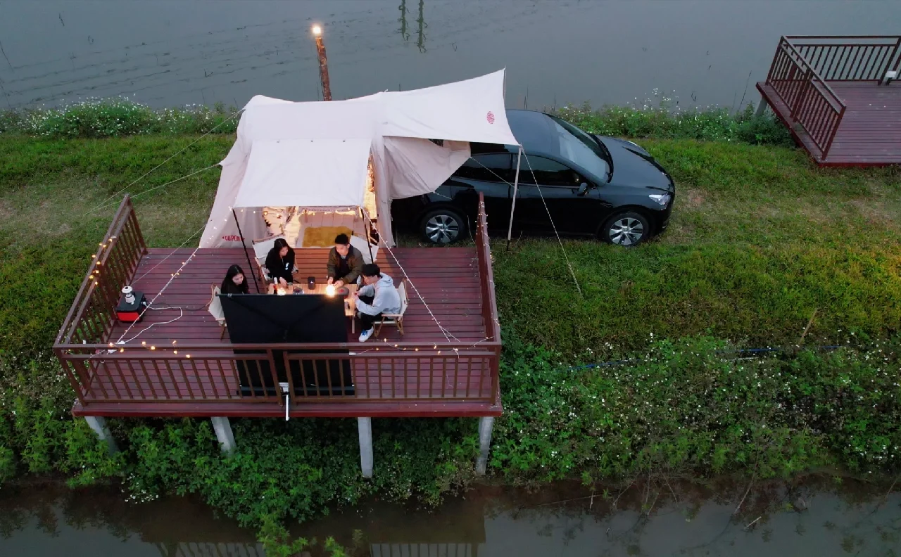 发现广州露营好去处,人也不算太多。 这边露营还有一个平台,可以在平台上烧烤、打火锅。 帐篷可以搭在平台旁边,露营的氛围感瞬间拉满。 和朋友们再一起打个小火锅🥘,一起看看综艺📺,吹吹晚风🍃,真的太惬意啦! 再繁忙的生活有时候也需要偶尔停下来,看看身边的风景!