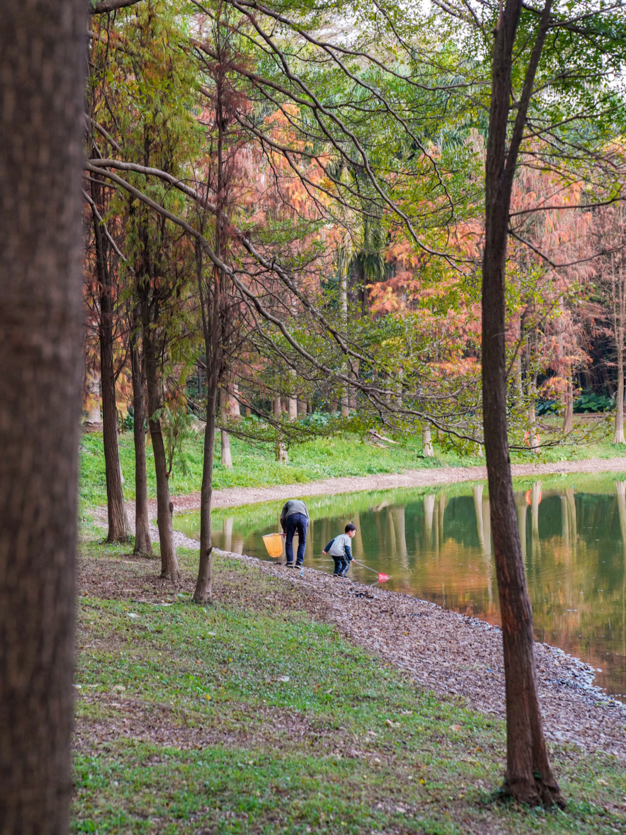 ❷ 湖边有一小片落羽杉,倒映在湖面上像油画一样,选对时间很好看。