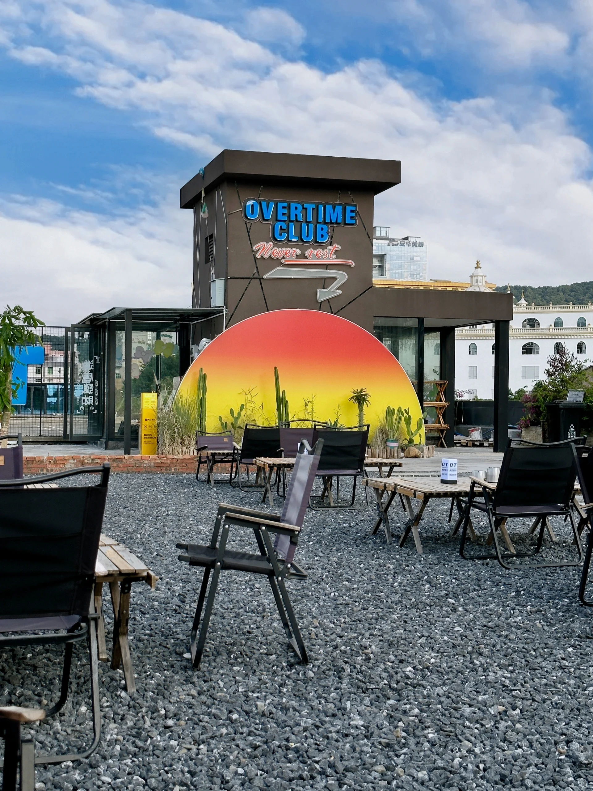 广州白云区黄边的天台露营酒馆 这里是属于户外在二楼 建议日落时间的时候来. 因为下午5点多的时候真的热. 随意怎么拍都很好看📷店里都很宽敞. 白云区也有可以有网红拍照的地方啦,位置也很好找,快带上你的小姐妹一起去吧! 📍:白云区黄边北路569号云创中心3楼(奇瑞汽车斜对面) 🚇:黄边地铁B出口走 682m 🏠:OT coffee 露营咖啡酒馆