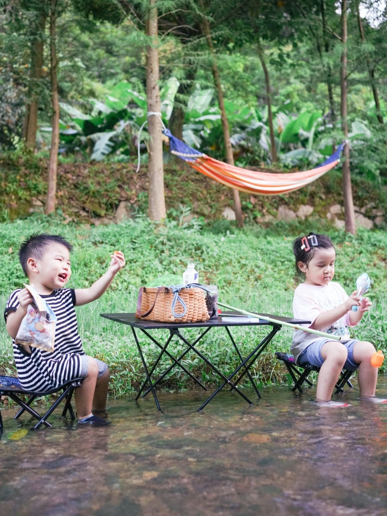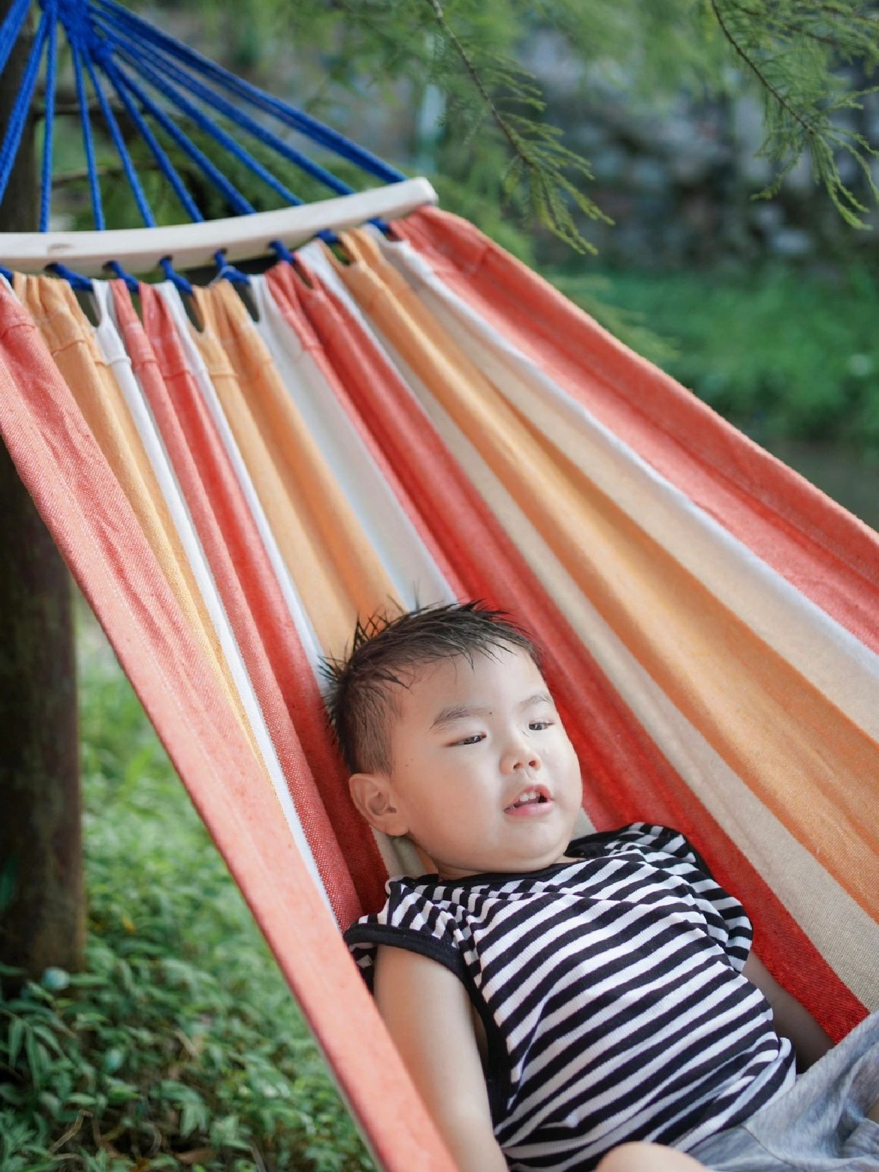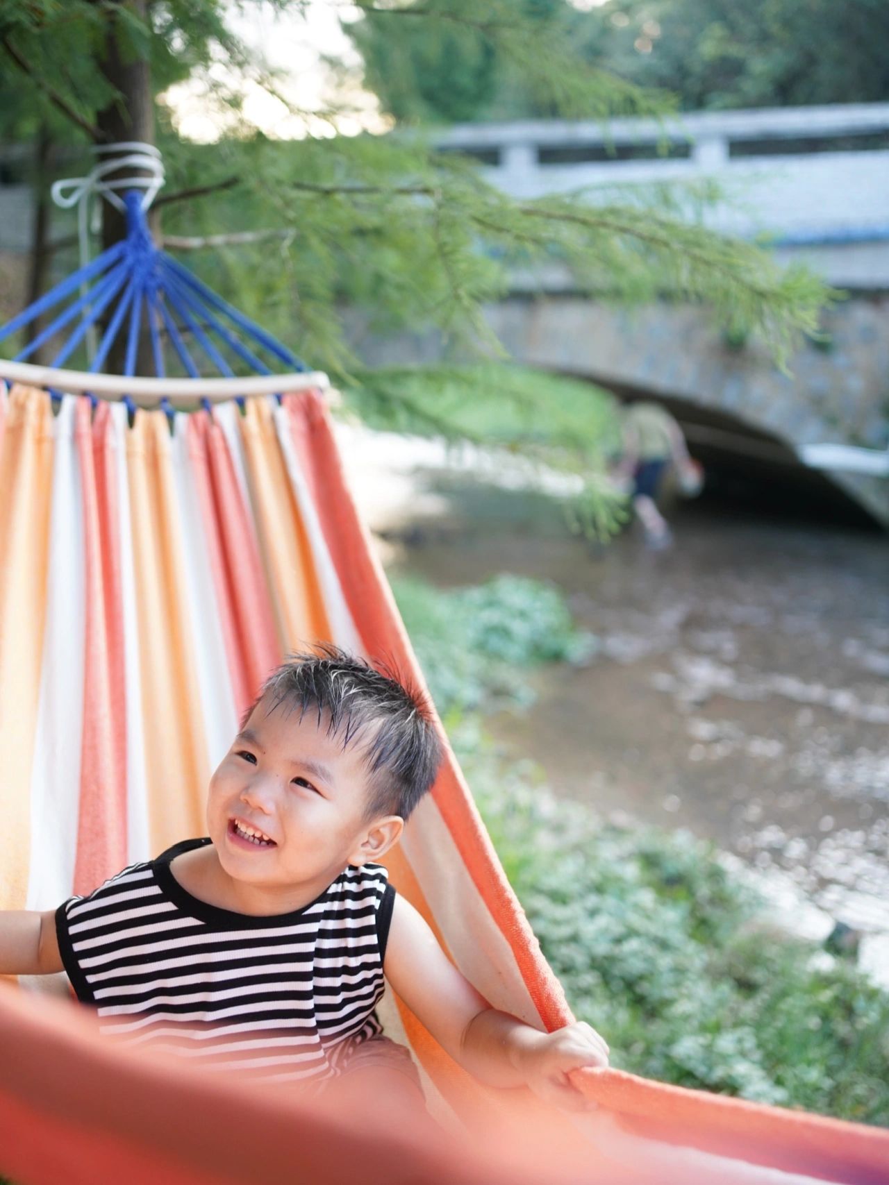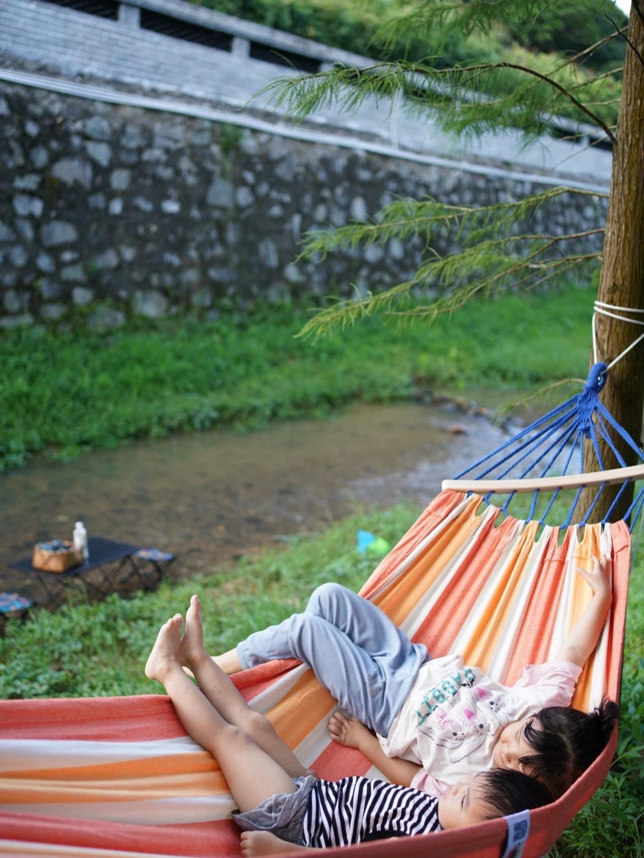 2带了HIKER HIKER系列吊床,小溪边的树就可以支撑搭建,孩子超喜欢超惊喜,抢着要躺在吊床里睡觉荡秋千哈哈。