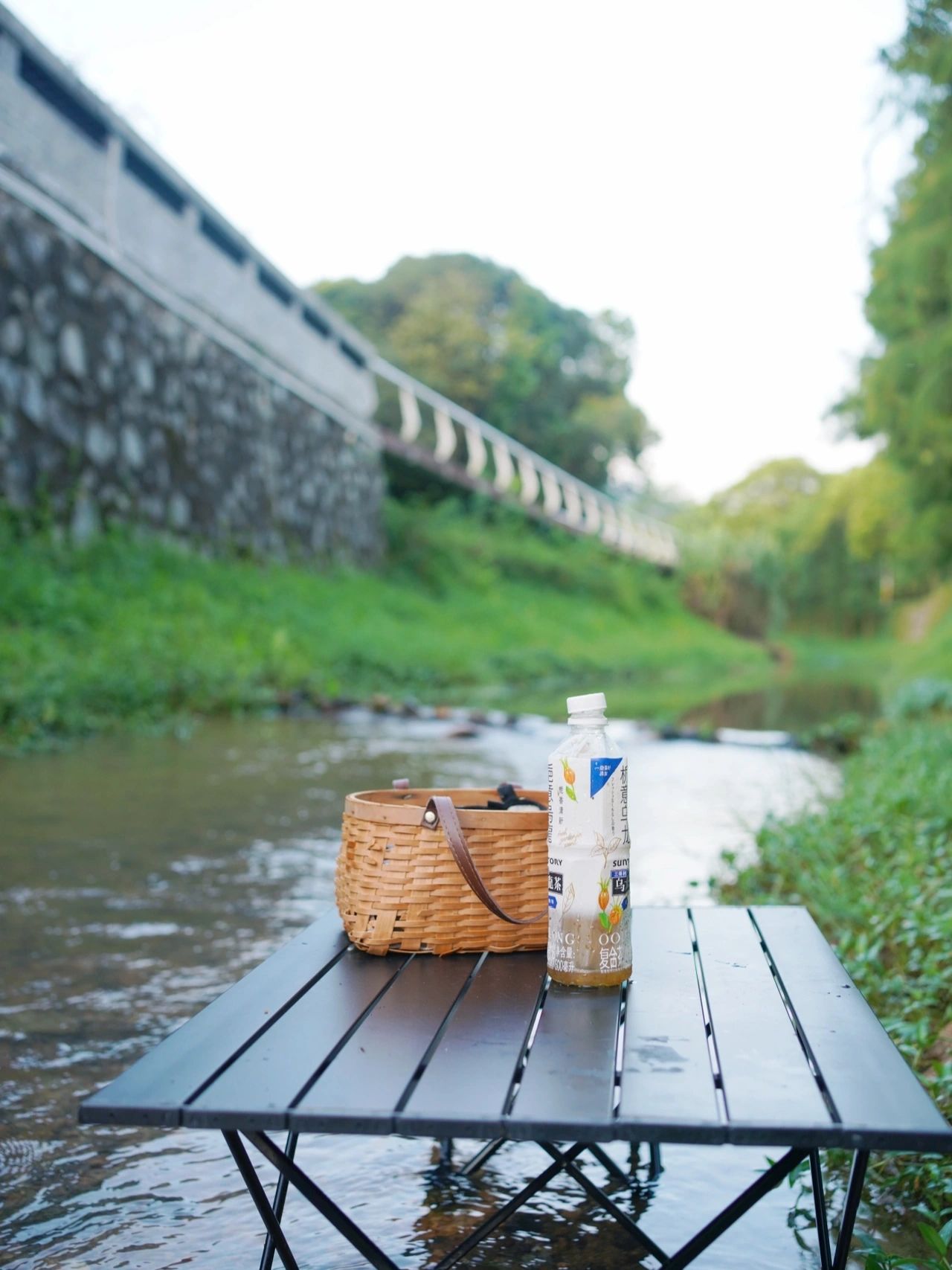 1露营桌椅折叠收纳好小小一袋,非常轻便好携带,超级适合带娃出行!放在溪水里也很稳稳当当。