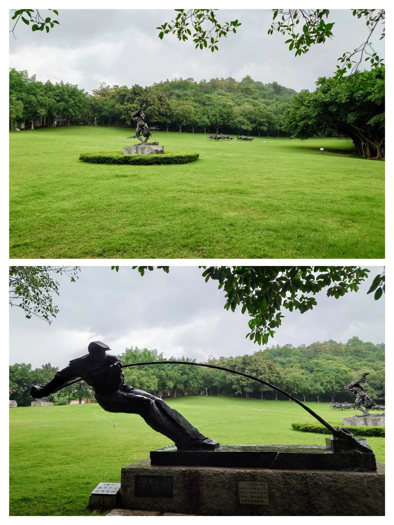星期二 小雨 从麓湖公园沿着云道步行20分钟到雕塑公园. 营地位于广州雕塑公园西门入口处大草坪,属于白云山景区管理. 导航到雕塑公园西门或北门,西门没有停车场,北门处有停车场,从北门走路到草坪约500米 草地开阔,植被丰富,有疏林草地的景观,景色优,还可爬山和看公园内雕塑. 同麓湖公园一样需要在公众号预约,只有周末和节假日 可以搭帐篷. 公园下午六点关门,尽量早点去. 大草坪旁边有卫生间和便利店,较为方便.
