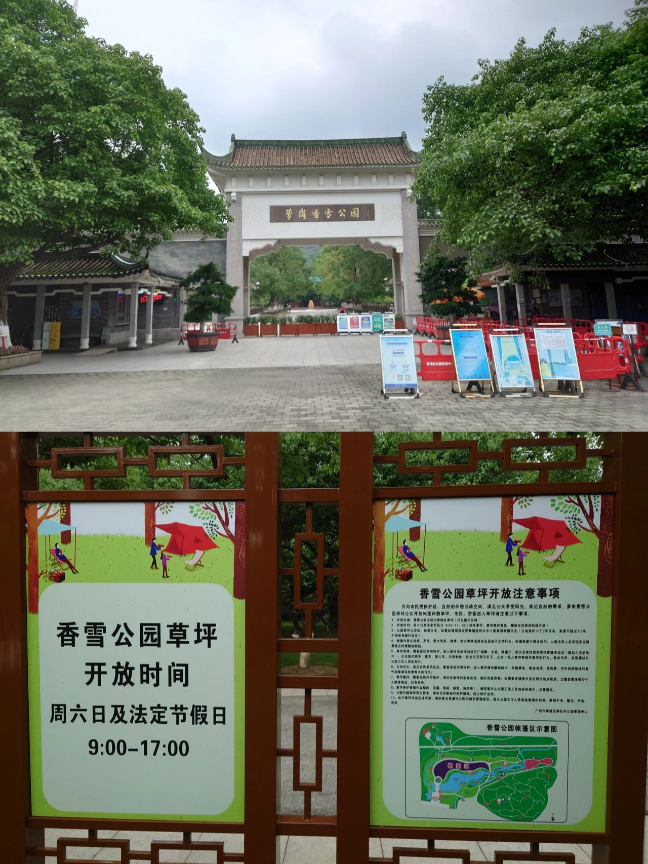 营地位于香雪公园内草坪,是广州首批25个可搭帐篷草坪之一,导航到香雪公园正门 正门附近有个停车场,原来地图显示的停车场已经废弃,也可以沿着小路走到玉岩书院门口路边停车. 公园内草坪区域平整,有很多乔木树冠覆盖整个草坪,乔木比较低矮,无需天幕,野餐垫和公园帐即可。 公园北门正对玉岩书院,可以顺便去那转转。 周末和节假日9点到17点可以搭帐篷。
