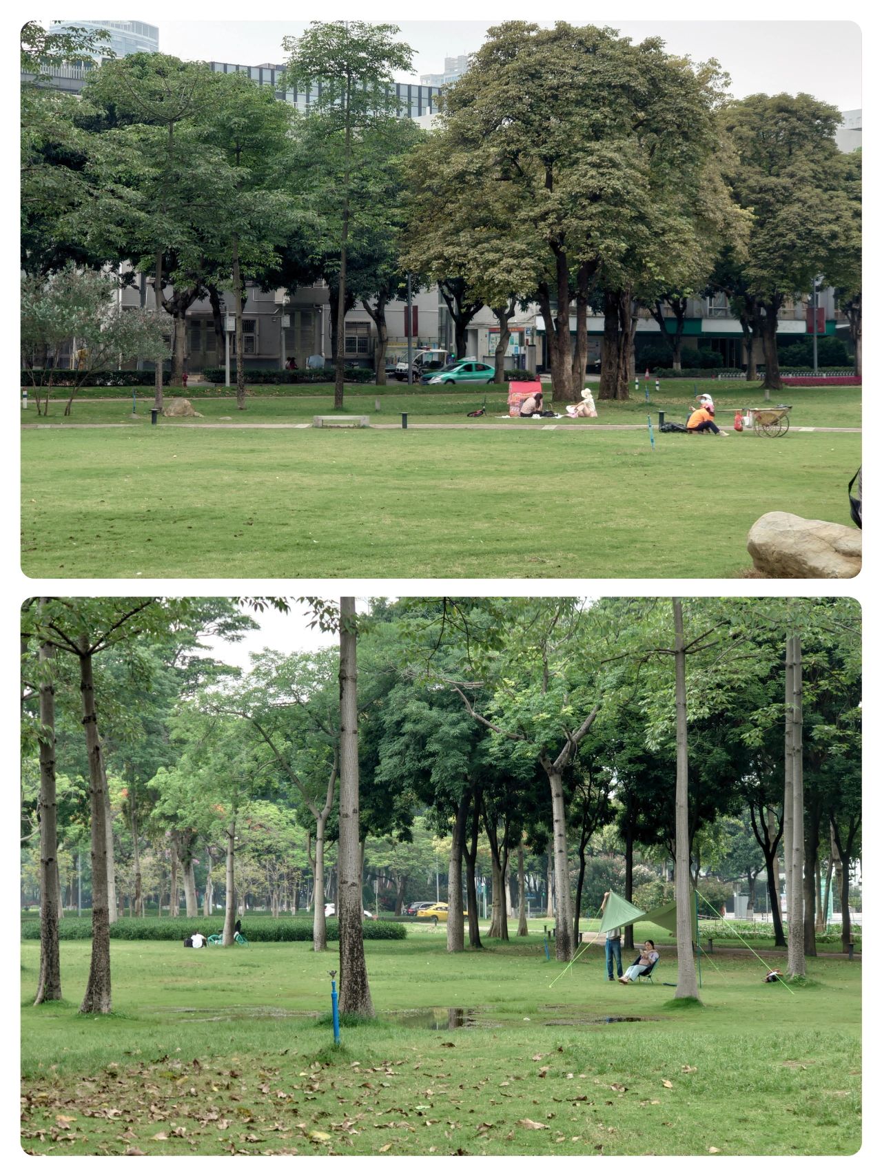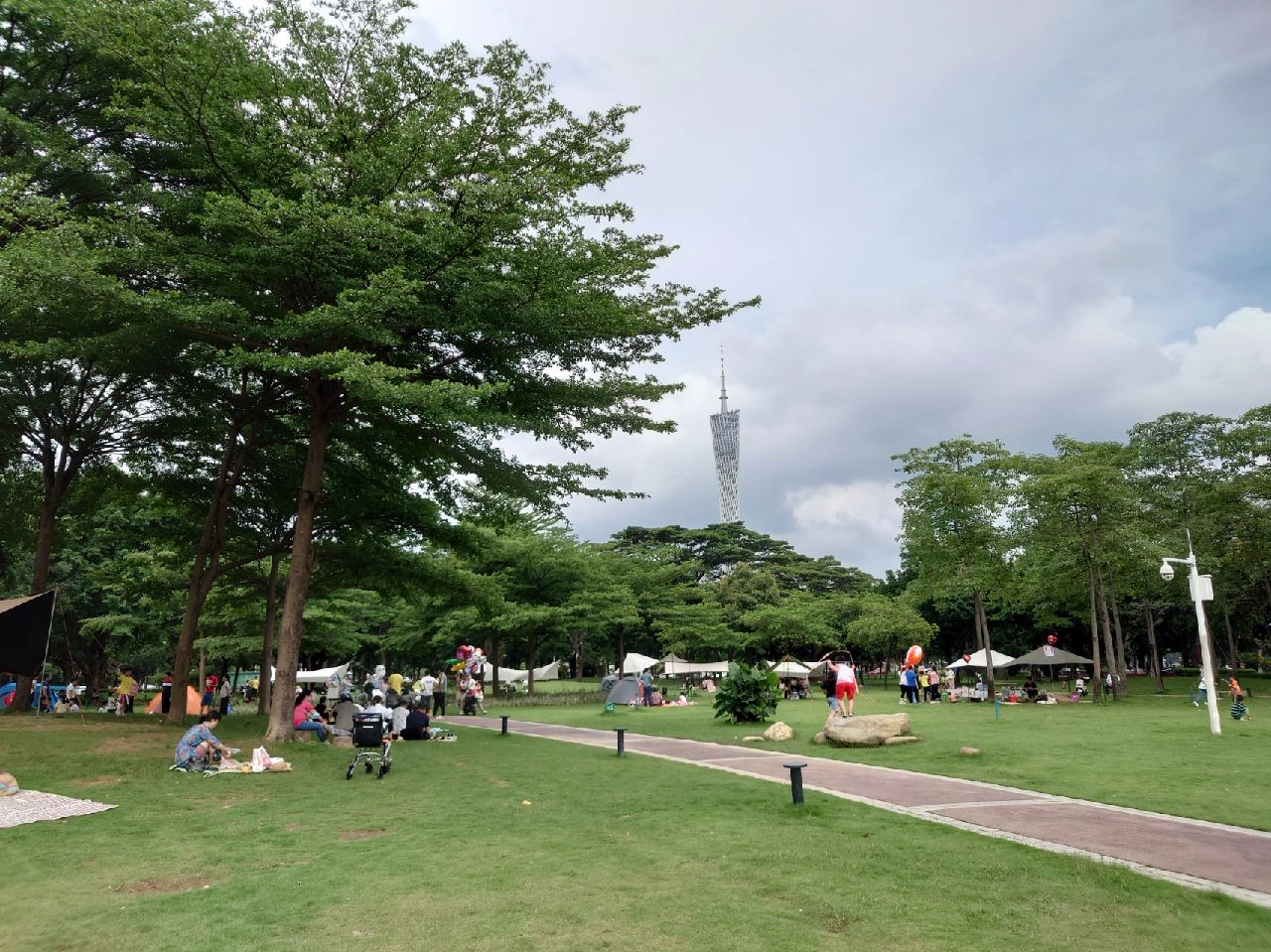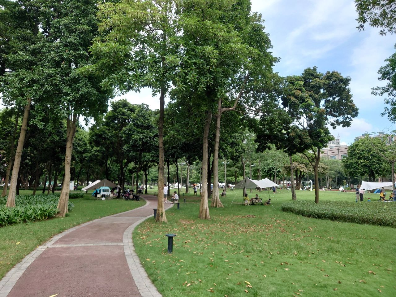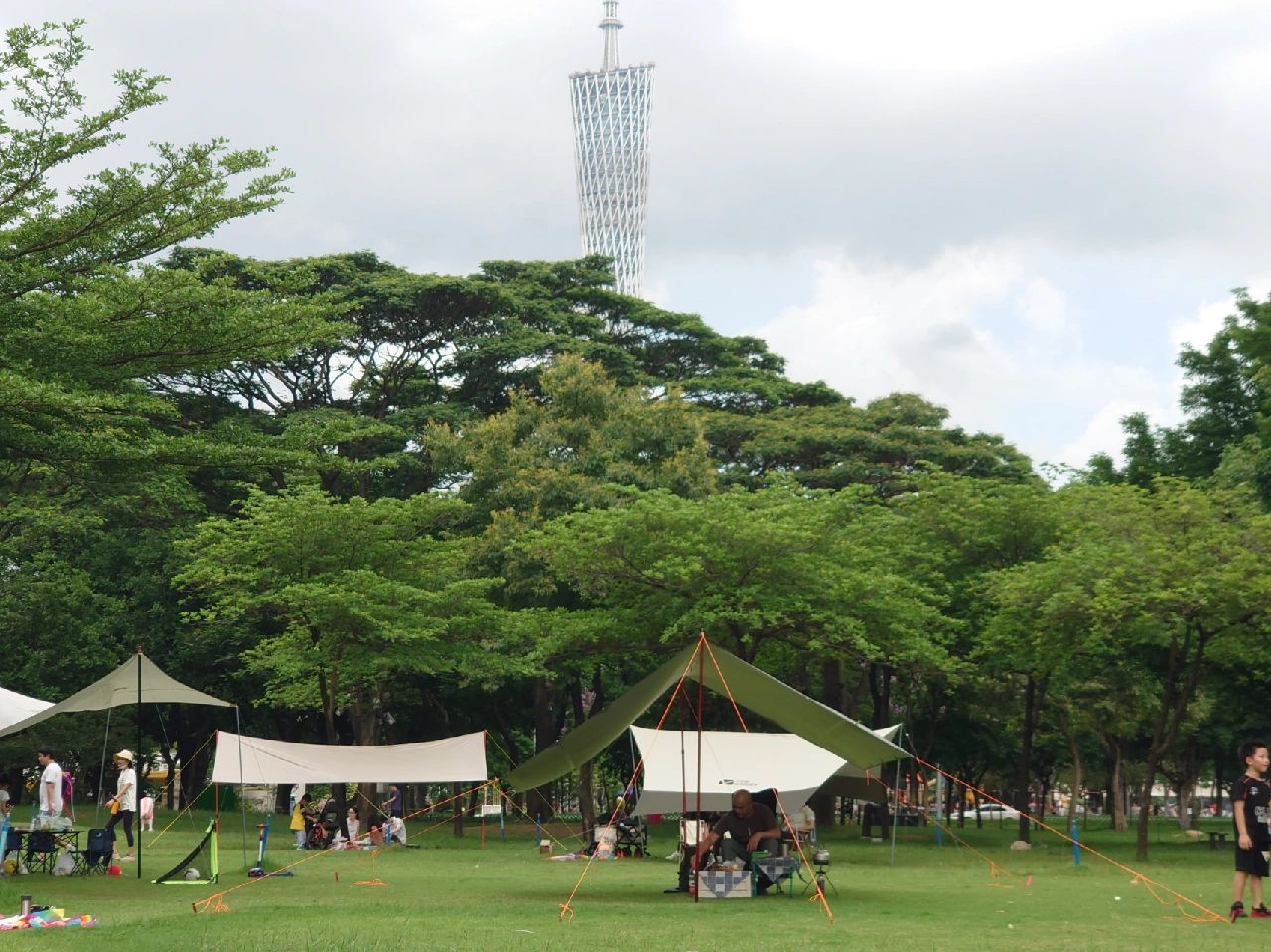 营地位于二沙岛,公园为带状,与传祺公园和体育公园相邻。 由于西侧两个街坊地铁施工,暂时封闭,只有靠近传祺公园的一个街坊开放。 草坪比较平整,周边卫生间不太好找,停车也不太方便,去的早可以停在小路的路边。 综合来说二沙岛还是推荐艺术公园和宏城公园。