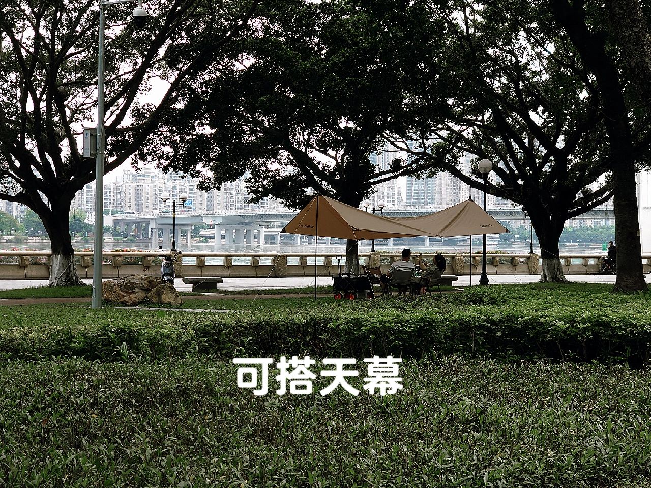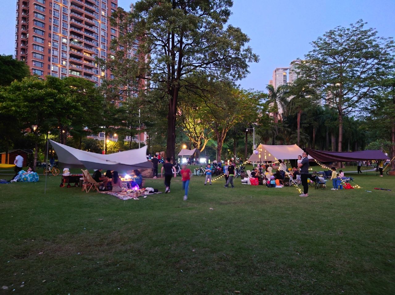 营地在珠江北岸,猎德大桥到华南大桥段,导航到临江大道东公交站。 由于是开放公园,管理不是很严格,可以搭天幕和各种帐篷,见到有人用卡式炉烤肉,公交站附近有公厕,比较方便,点外卖方便。 适合亲子露营。 晚上也可以露营到很晚,这点优于很多封闭公园,临江景色很美,美中不足离路较近有一定噪音。
