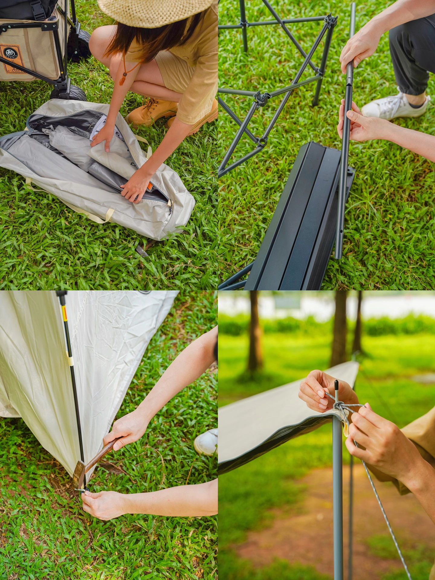 🏕调整风绳的时候,一定要先把地钉拔出来再调整,在草坪上很难找回地钉。