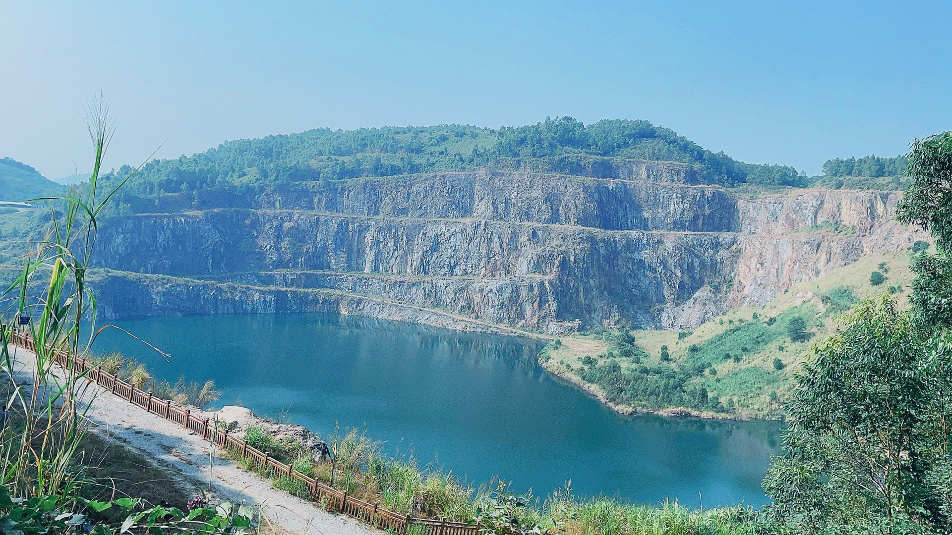 导航黄埔区的石牙顶天坑 麦村花海可以拍照打卡 有网红火车餐厅 山脚下有大片草地可以搭帐篷天幕 野餐、露营也是不错的选择 看到天坑爬山的难度系数🌟🌟 比较适合幼儿园的小朋友一起亲子爬山 一大段平坦的路 上一小段台阶就到了 全程不到半个小时 一路上有自助扫码卖水的点 天晴晴的时候打卡拍照好看些 拍天坑的最佳打卡点在左上角的位置 注意安全