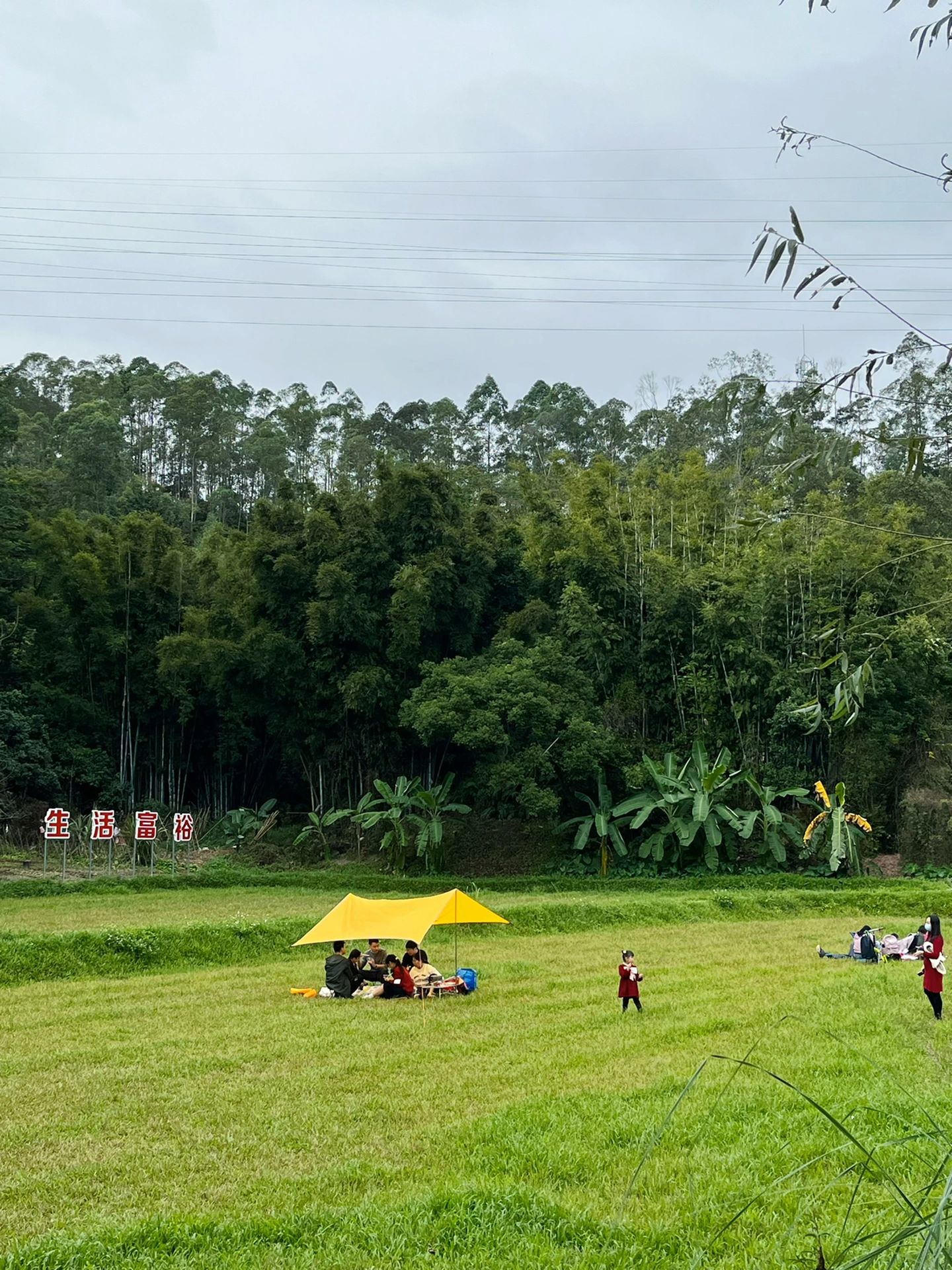 我们是周末来的,看到有一家人、小情侣、三五成群的朋友,还有带着爱宠的都来这边游玩,露营⛺,玩飞盘🥏村口有一大片草地可以露营。