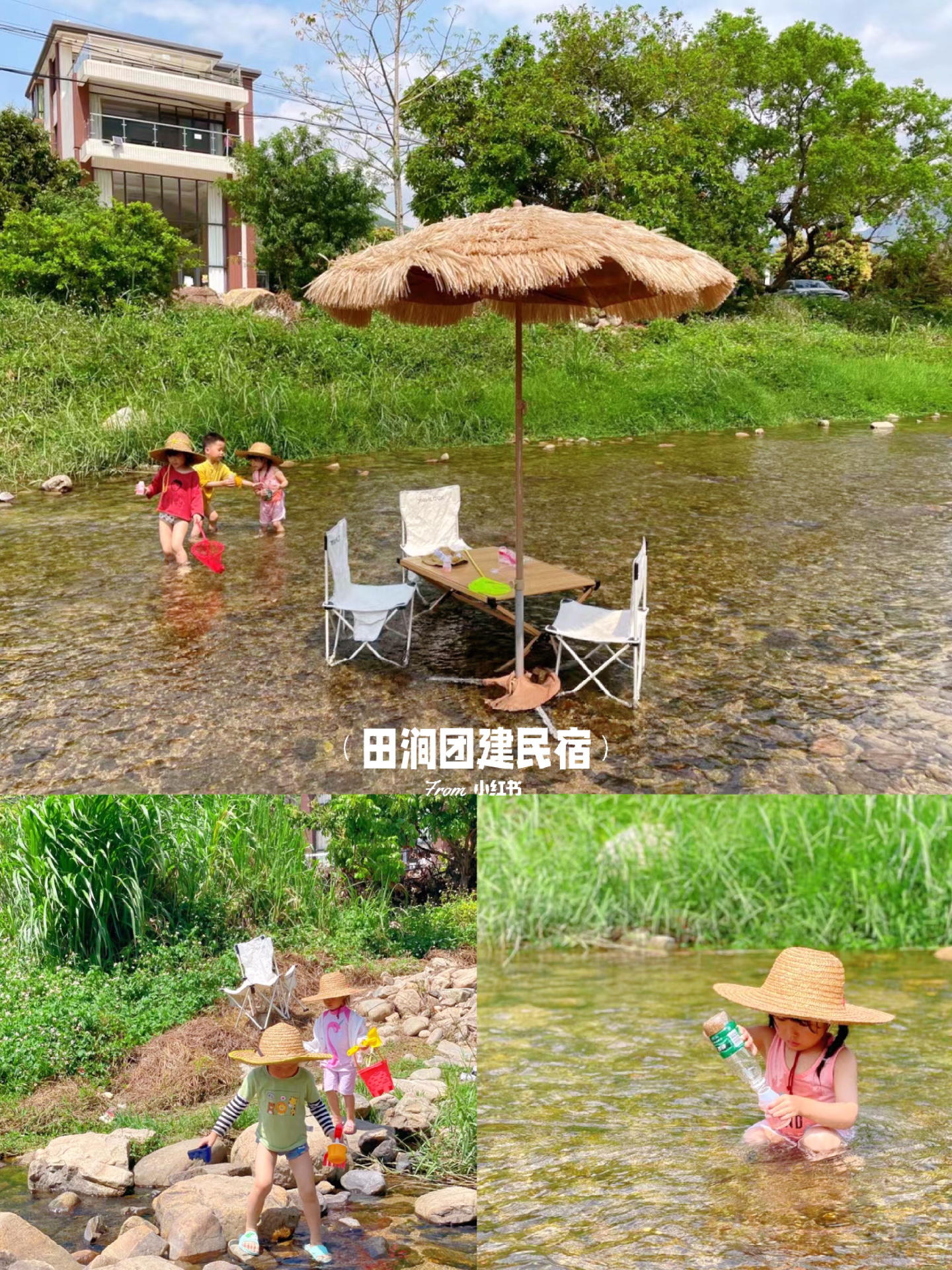 露营地门前有一条清澈见底的小溪,大小朋友见到都会忍不住冲下去玩溪水💦、泡脚丫👣