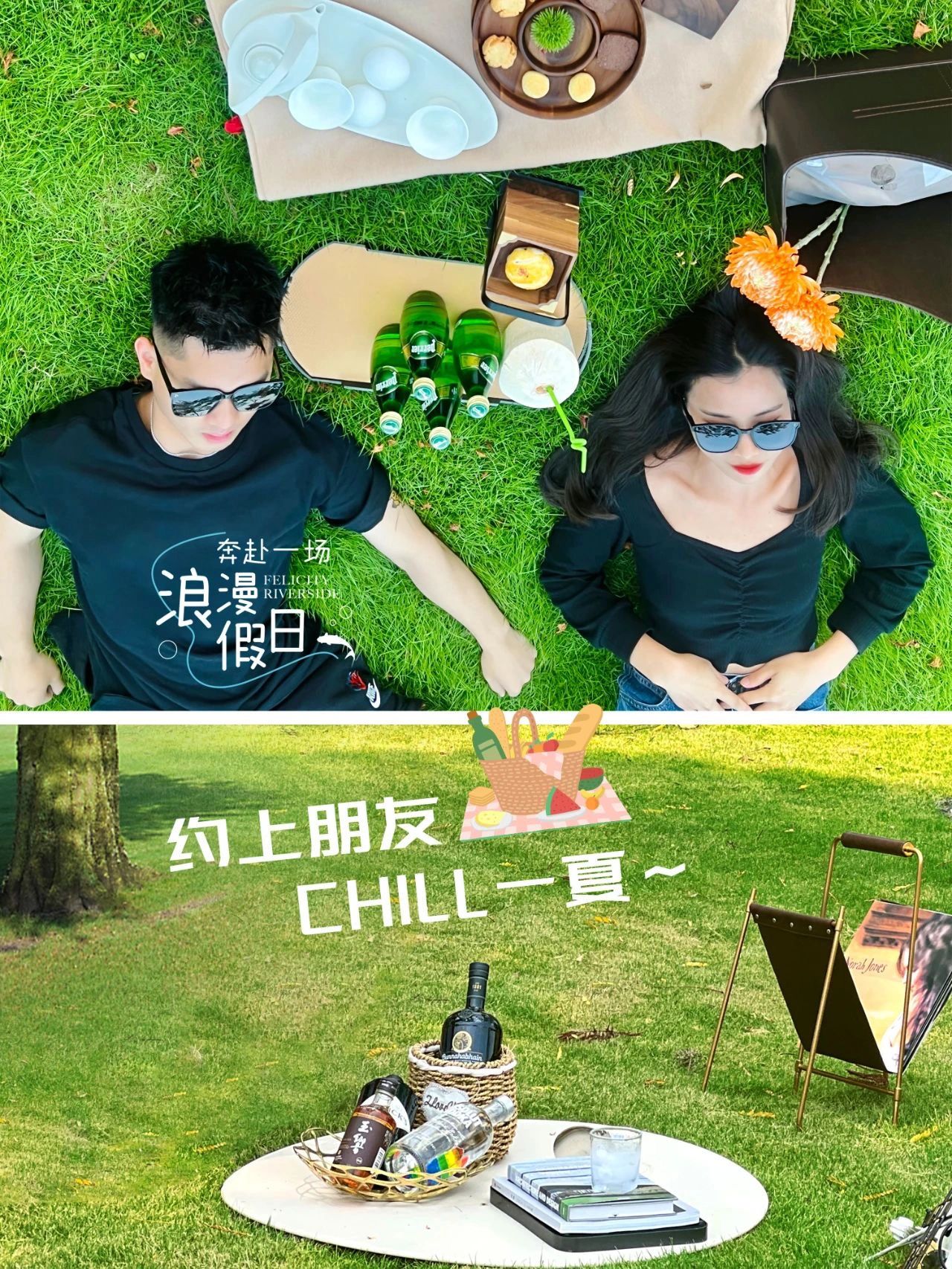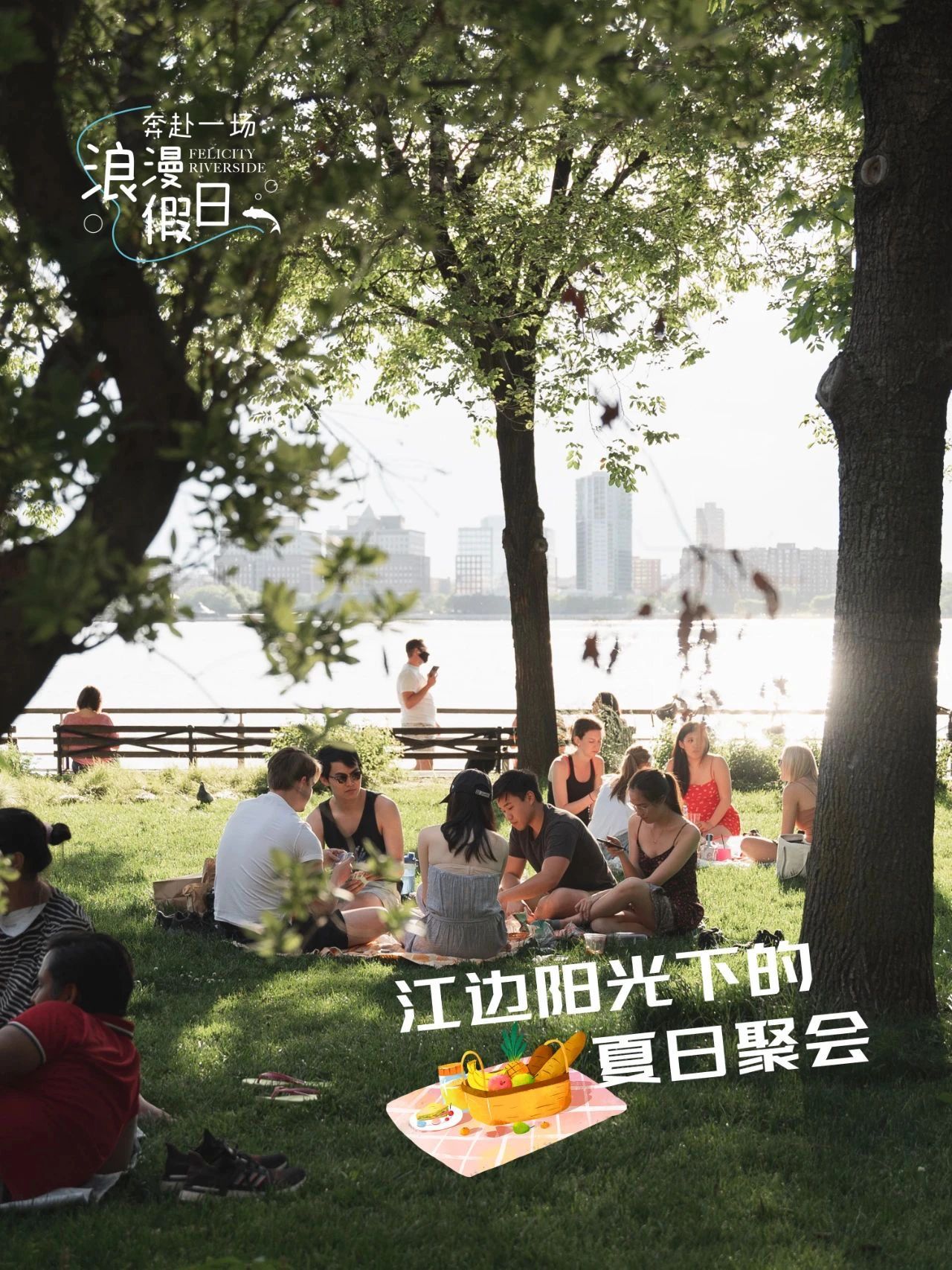 与夏天的微风、江景和日落一起野餐🥂