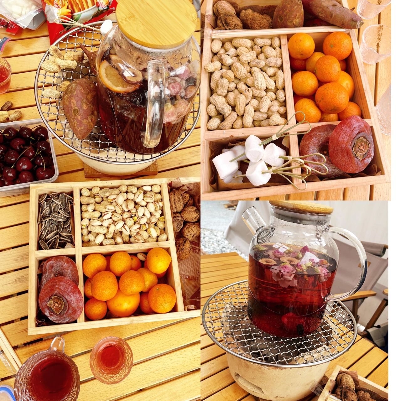这个套餐食材非常丰富,红薯🍠、柿饼、盐焗花生🥜、红枣、瓜子、核桃、桔子🍊.然后再搭配一壶玫瑰花茶,很好喝
