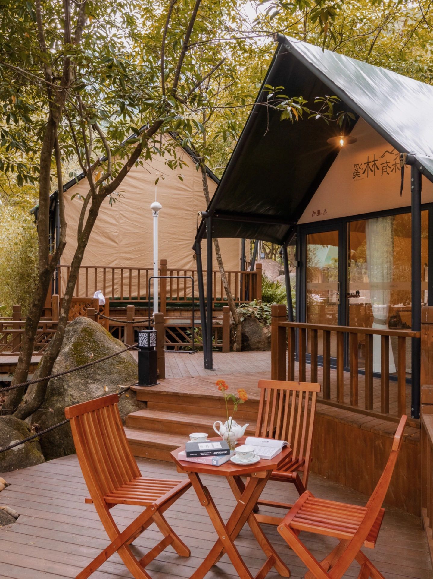 ▪︎森林覆盖率极高、群山环绕与特色帐篷相融,犹如世外桃源般。