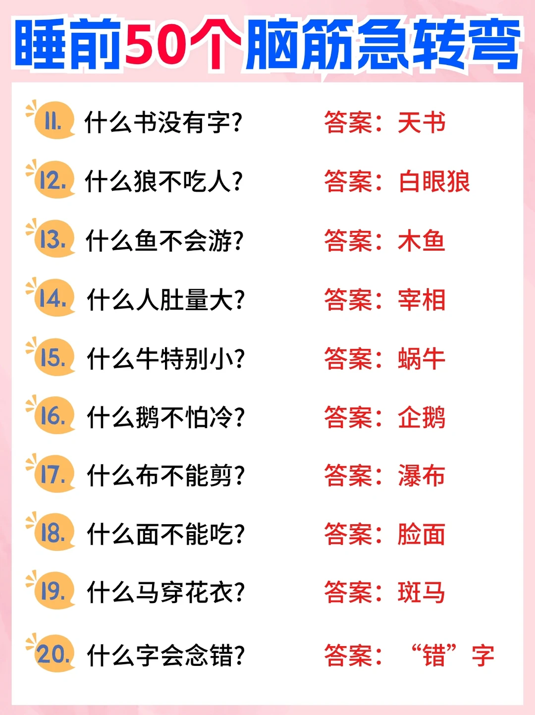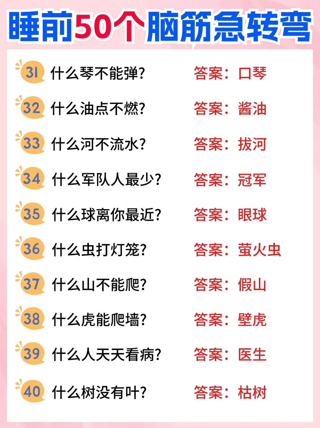 睡前不知道玩什么的,可以看过来👏今天整理了50个可以陪孩子玩的脑筋急转弯,锻炼孩子思维能力的同时,又能陪伴孩子成长!