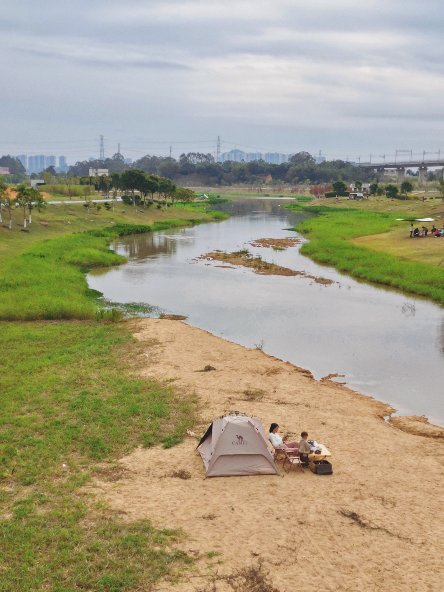 去了好几次洋田村,可以说这就是广州小众遛娃圣地,躺在帐篷里,娃在旁边玩沙子,一整天的享受😎