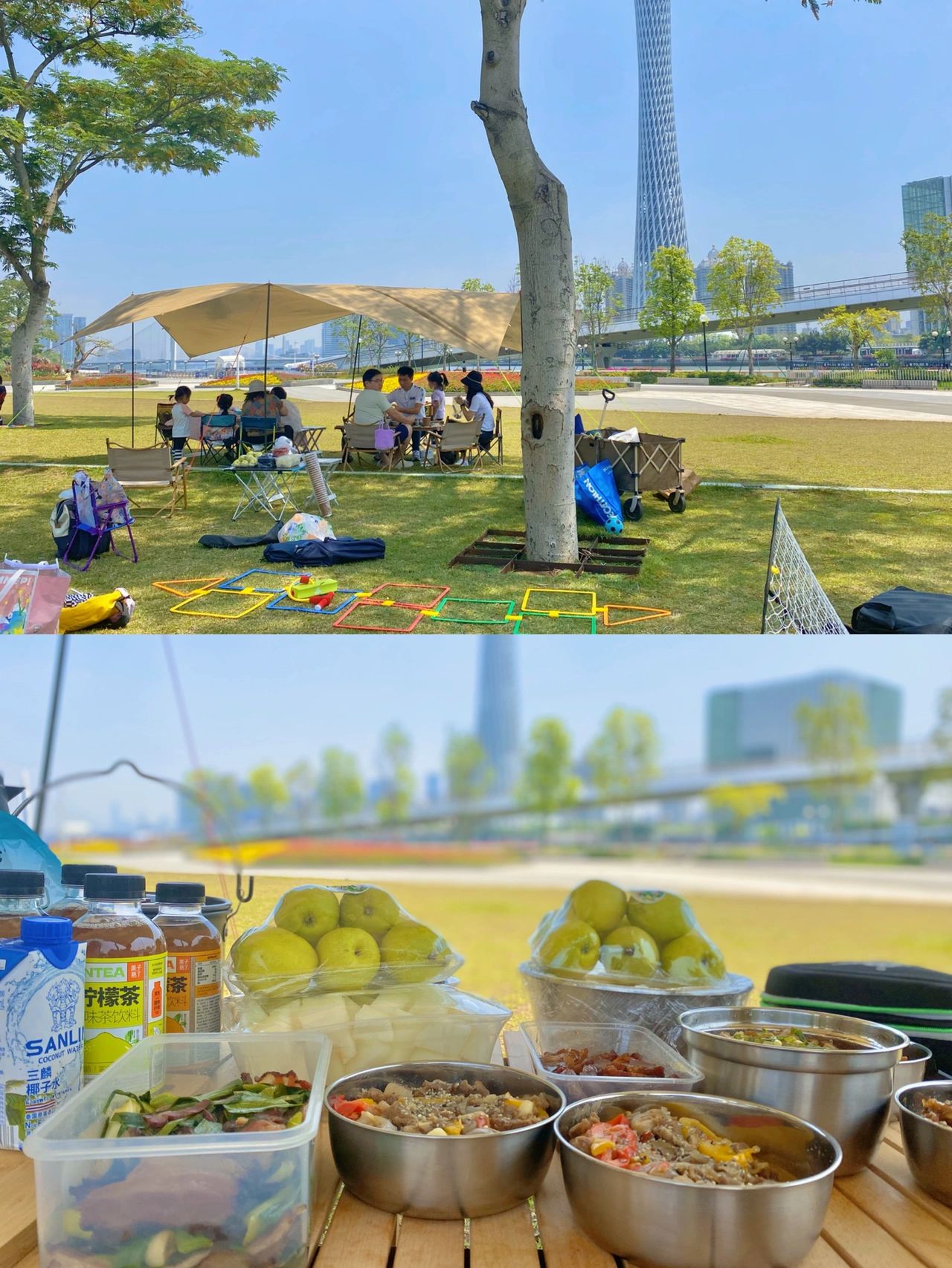 于是这里成了我们常驻地,无论晴空万里还是风吹雨打,都会带上家人朋友和事先做好的饭菜、甜品…一呆就是一天………☀️☁️