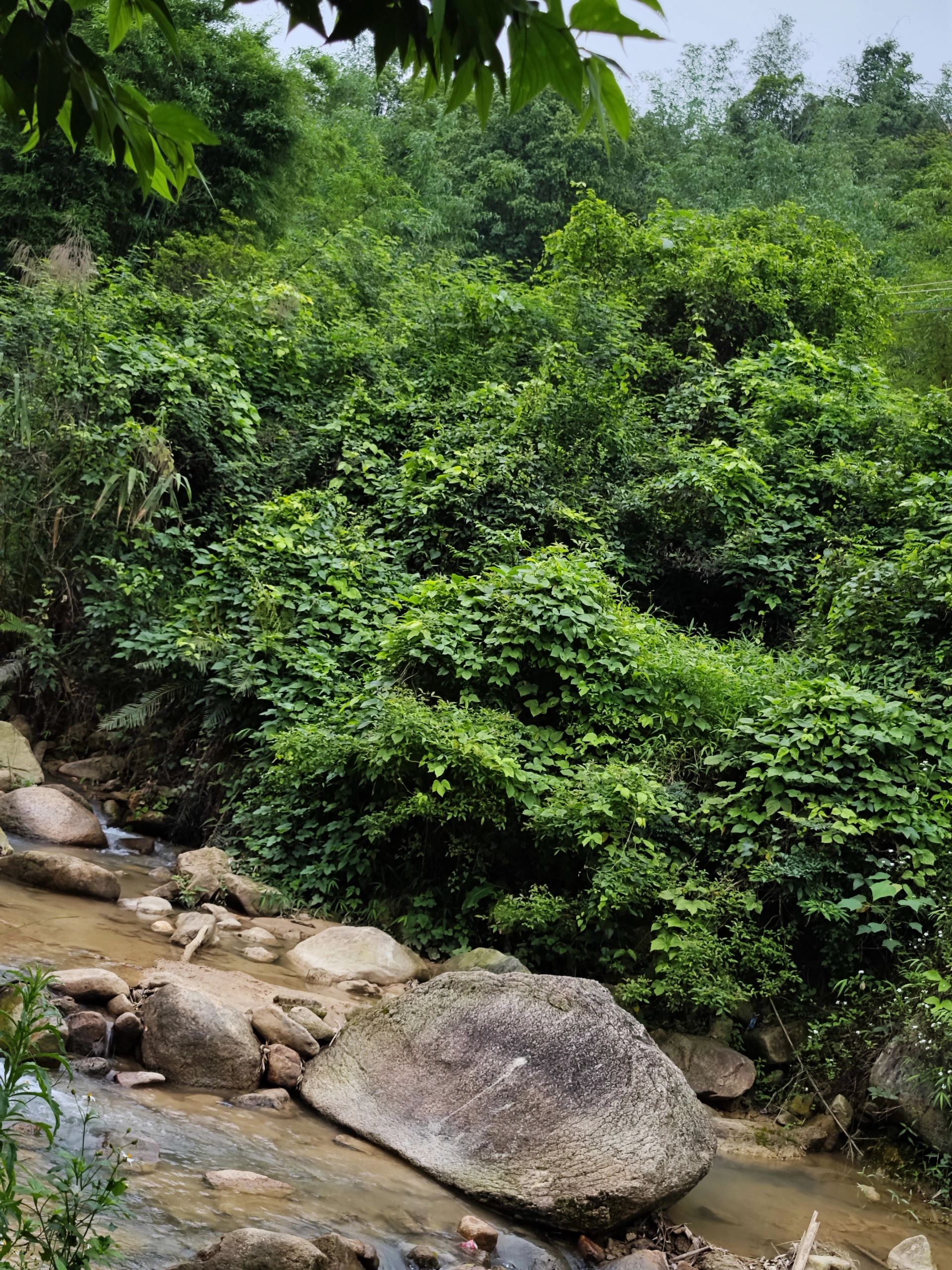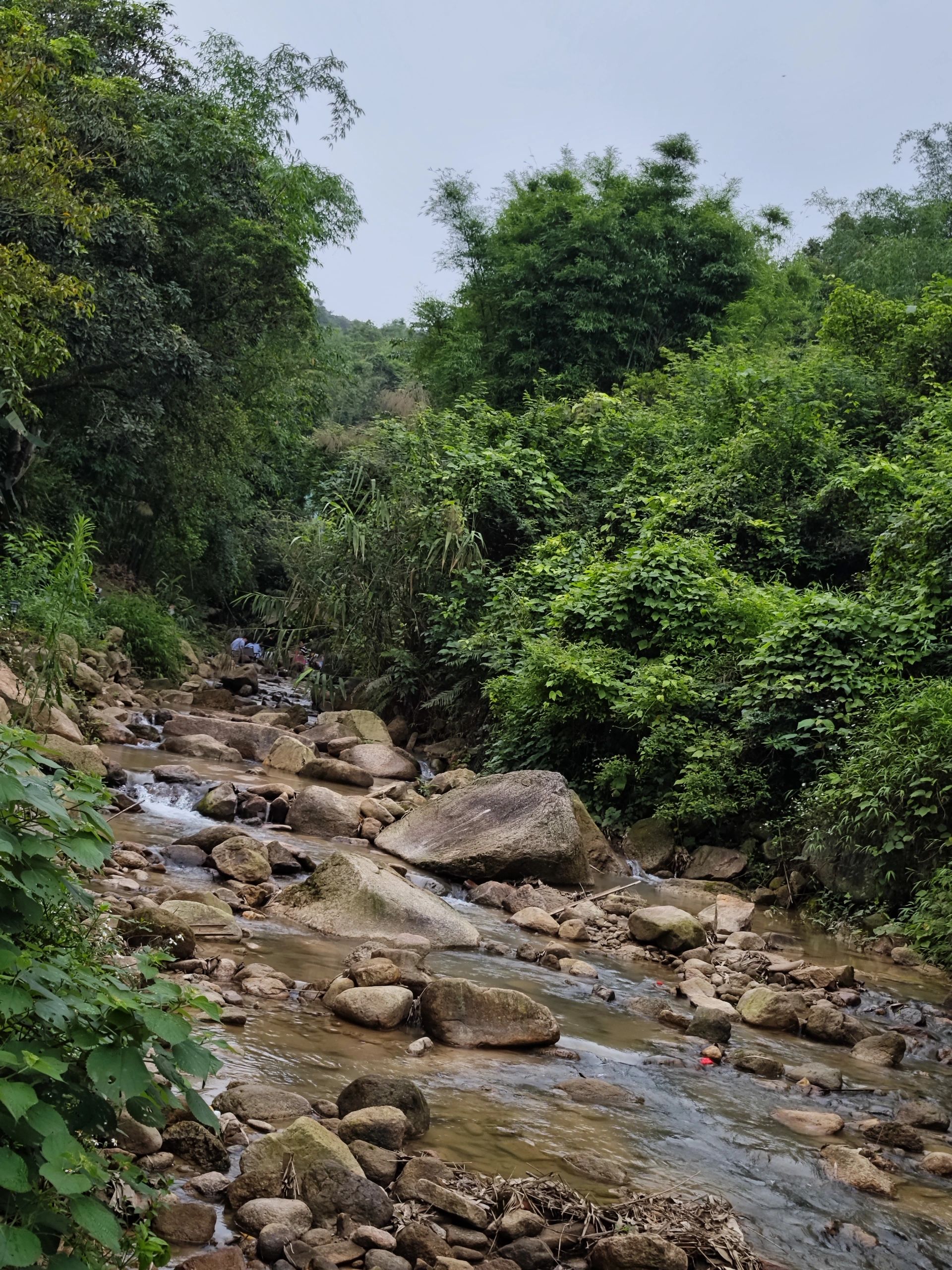 刚开始我们挑了小溪的位置坐的,就在水流中野餐,拍了一轮照片,吃了一轮零食,还是觉得草地露营方便点,又转位置了。