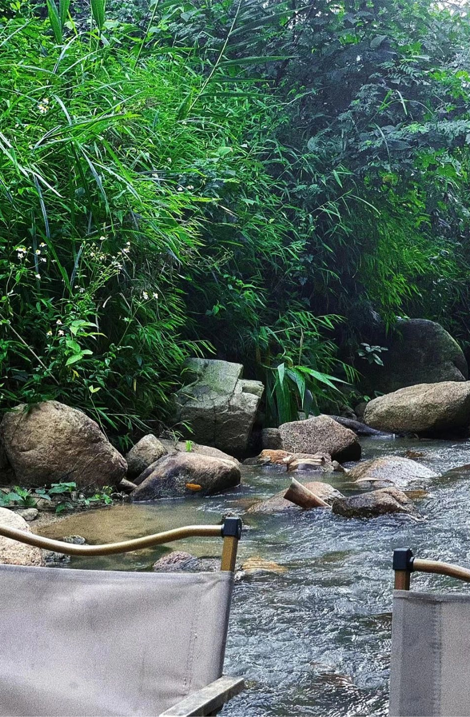 溪水基本不深,在水里放上蛋卷桌和椅子,边泡jio边玩水!水也是相当清澈,但底部是沙子,所以看起来颜色是黄色的,其实清澈透底的