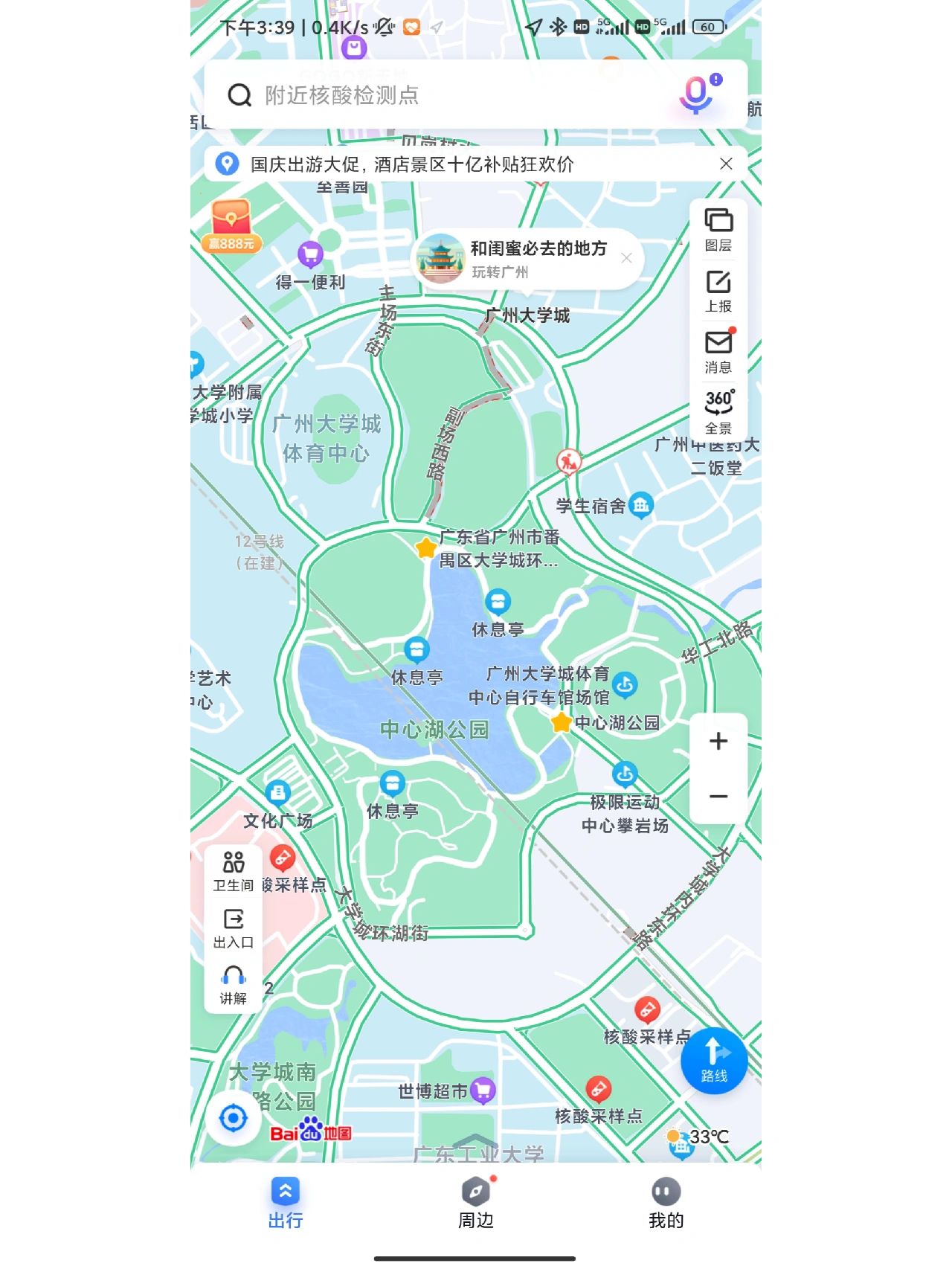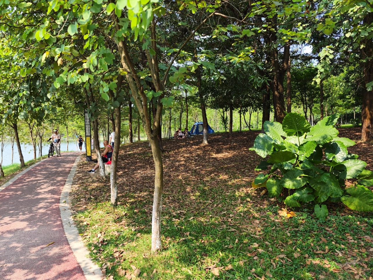 大学城中心湖也是一个非常适合露营跑步钓鱼的地方. 图片都是近期拍摄,要过去游玩的朋友们可以看看. 图1左下角文化广场有收费停车场-自驾游玩最nice,环境是露天停车场见图2 文化广场下来也有大片空地,就是树荫不够. 图1上方标星是我实地勘察觉得比较好的地方了. 湖边草地普遍较窄,游玩的时候要注意安全!