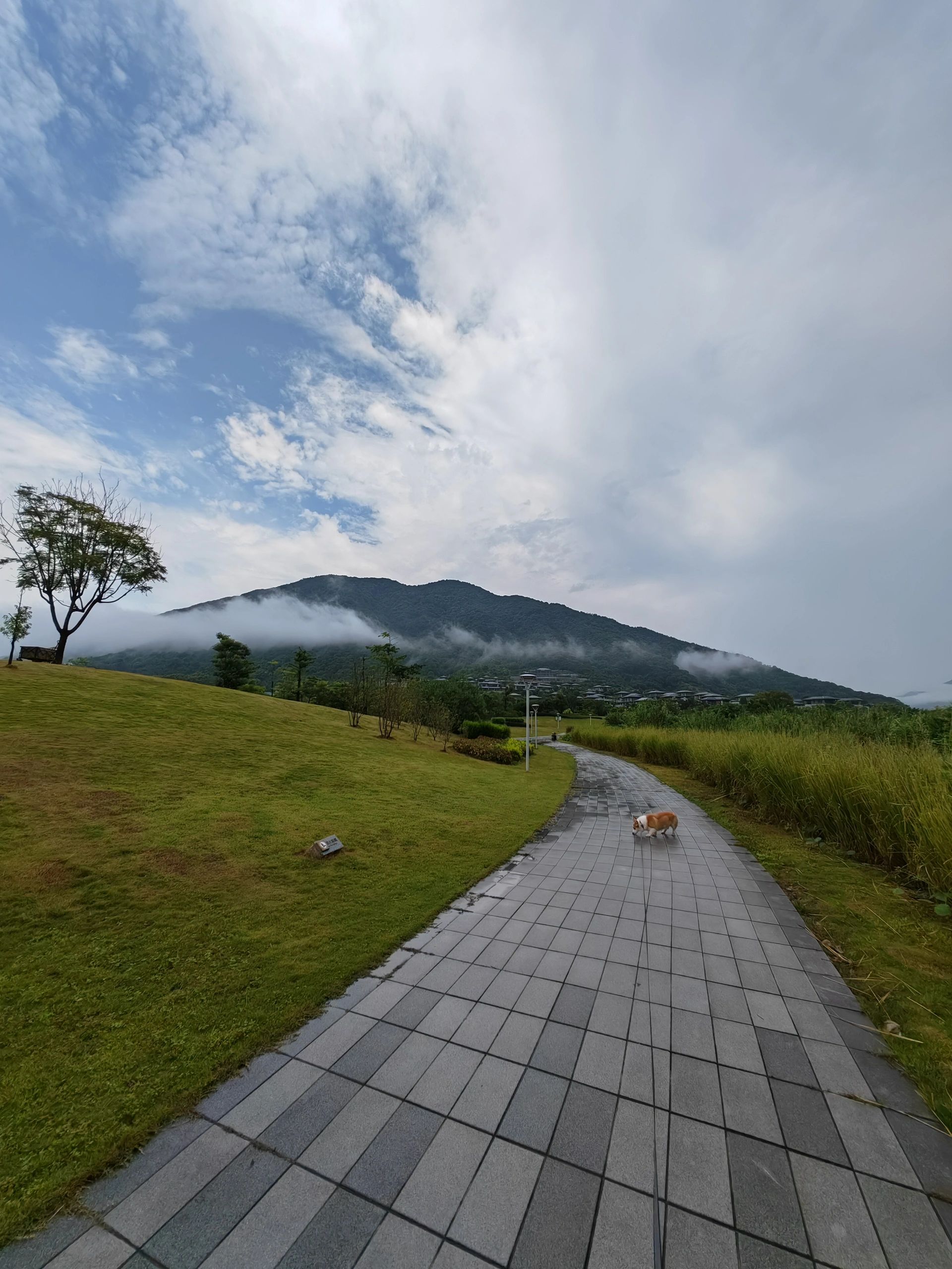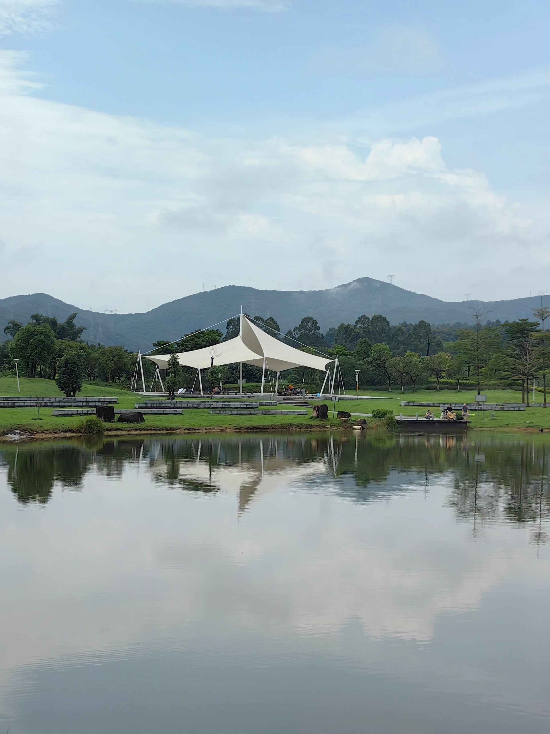 公园占地面积很大, 在流溪河边, 四面环山, 草坪面积很大, 非常适合周末野餐,遛娃,露营,散步,遛狗