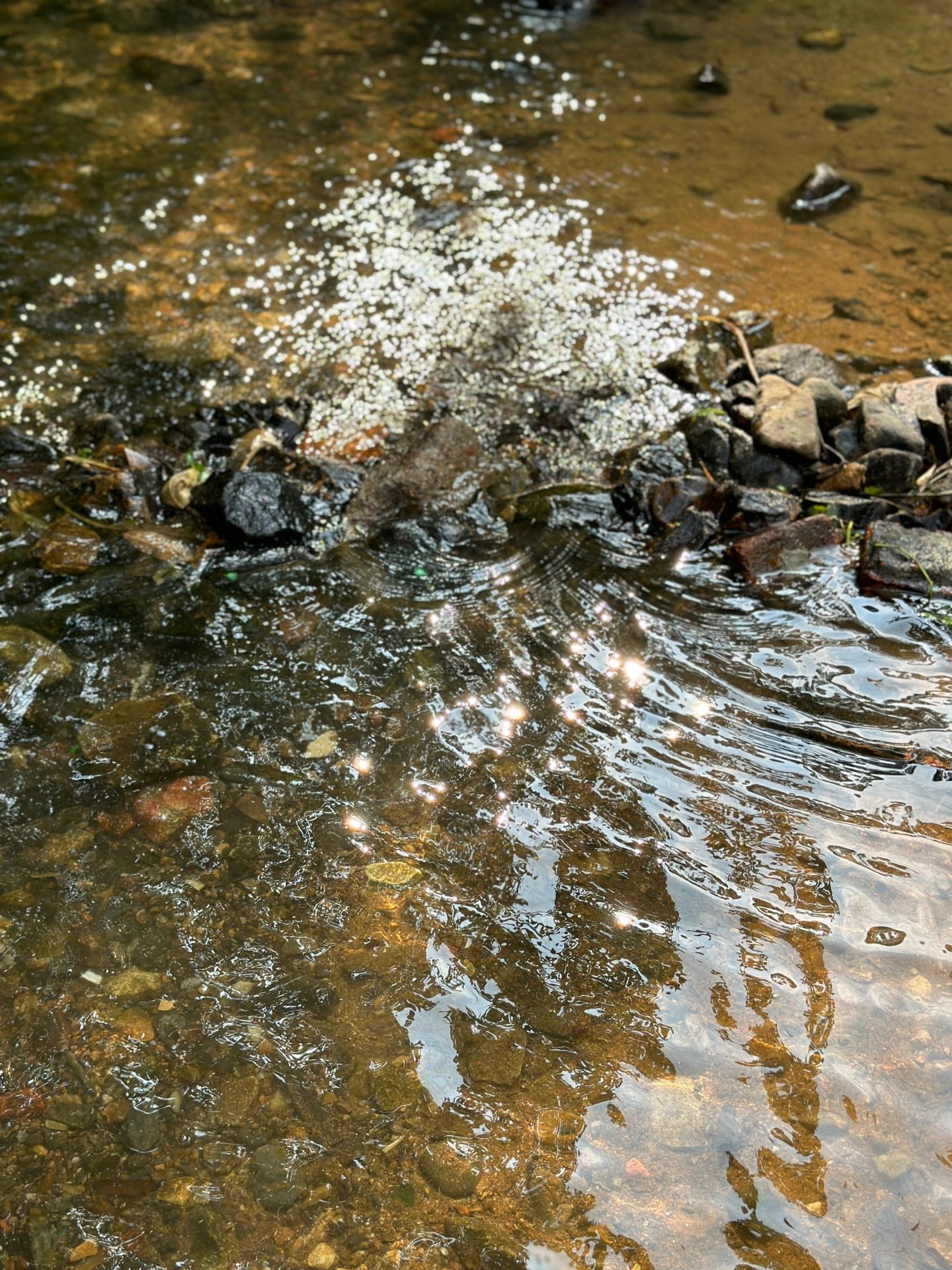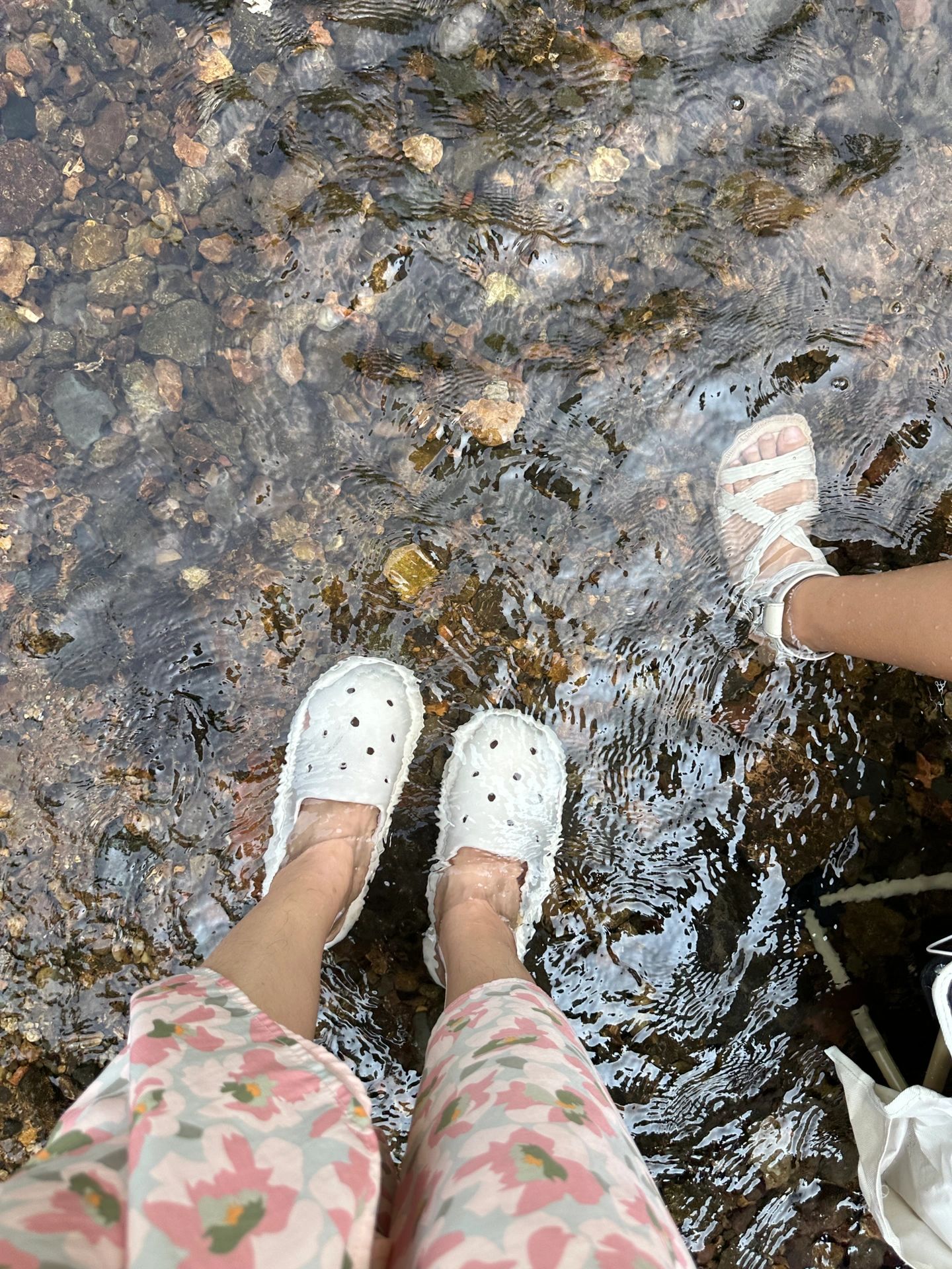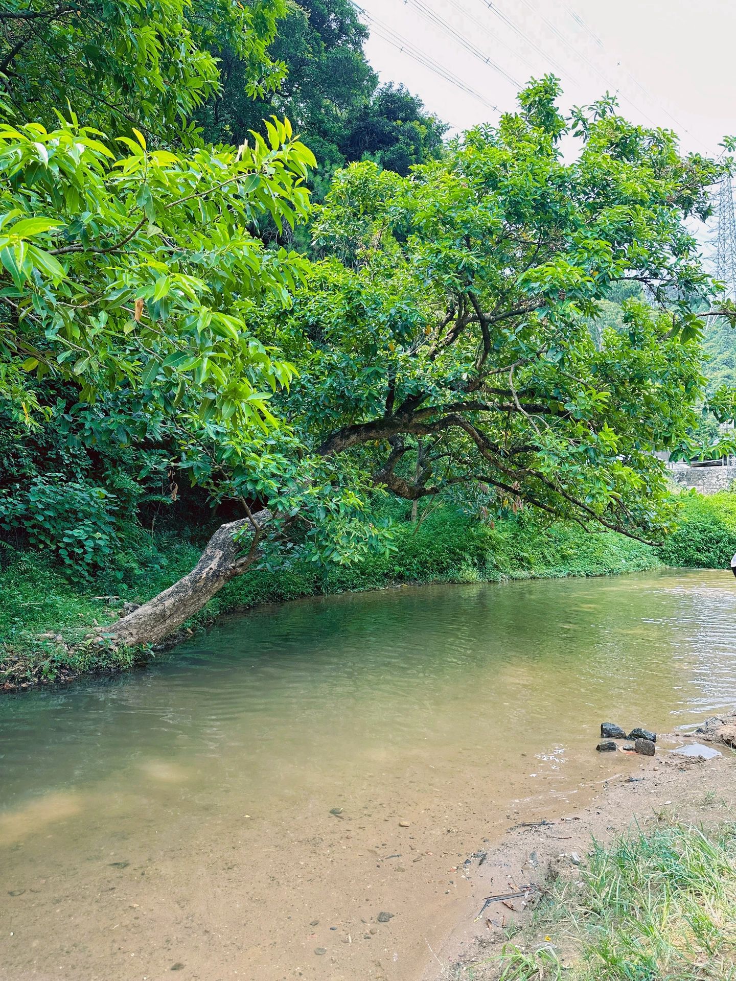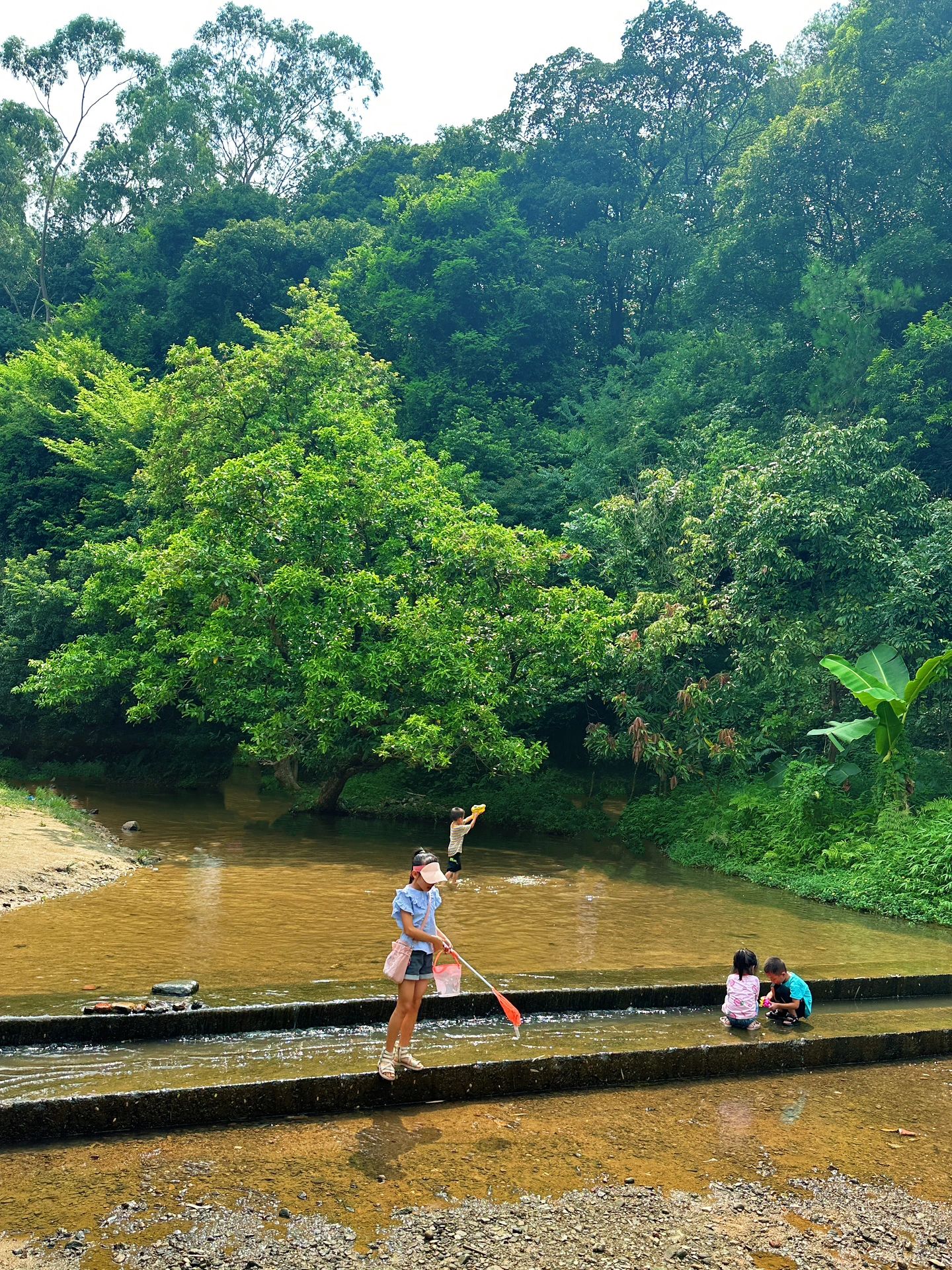 再不玩水!夏天就要结束啦! 广州市区半小时,即可到达一处清净的竹林玩水地! 这里有比较多的树荫,即使下午都不会怎么晒到 水位很浅,到脚裸位置,很适合带上露营椅泡泡脚 水质也很清,有很多小鱼,不过游得很快 足够一家人轻松呆一下午 大人舒舒服服看孩子玩水,挺好 📍 白云区同和大源村烧鹅煌农庄 农庄停车吃饭免费,马路对面就是栈道 下水位就是栈道入口这里有小斜坡下去