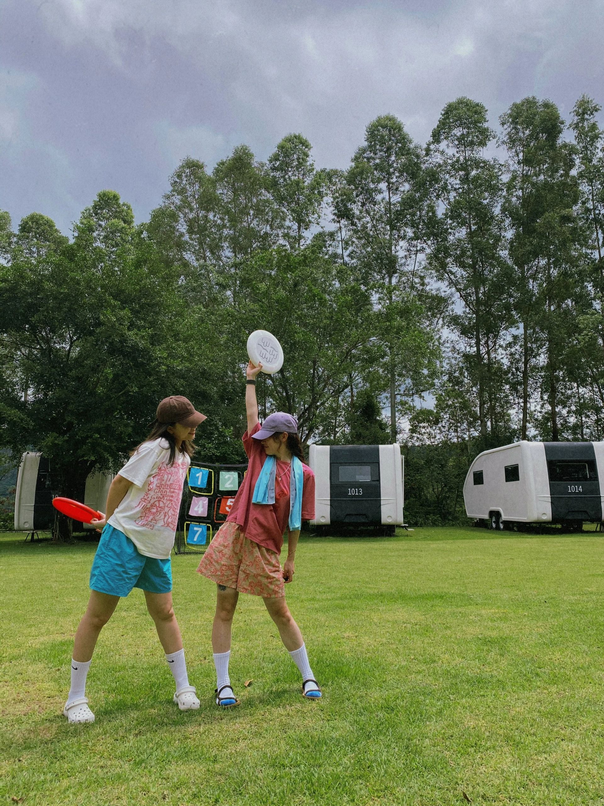 飞盘:营地的大草坪太适合飞盘了!跑起来都带劲!早上起来晨练项目!人多玩起来更开心~