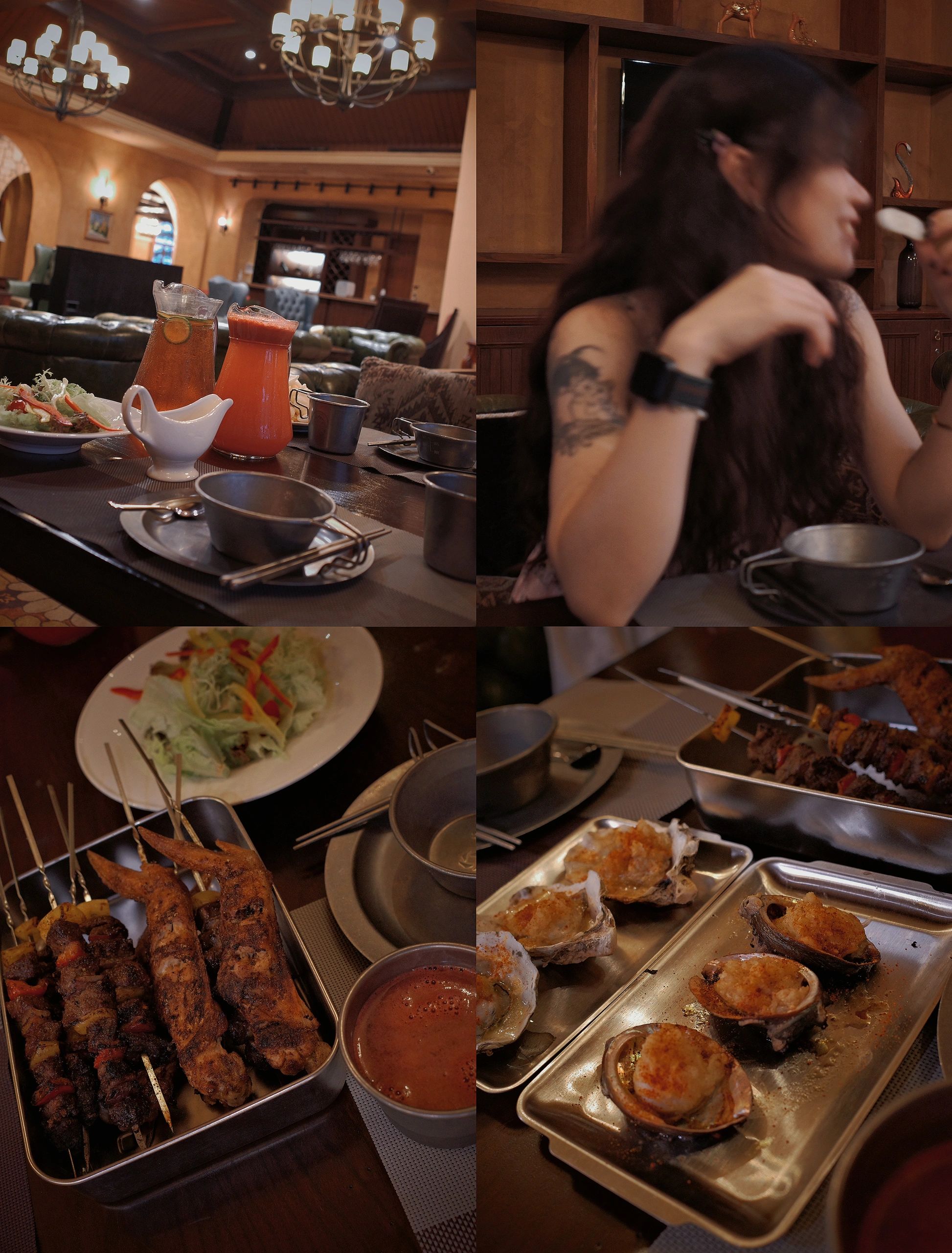 工作人员会帮忙烤,食材荤素搭配(夸夸师傅,味道很不错~)