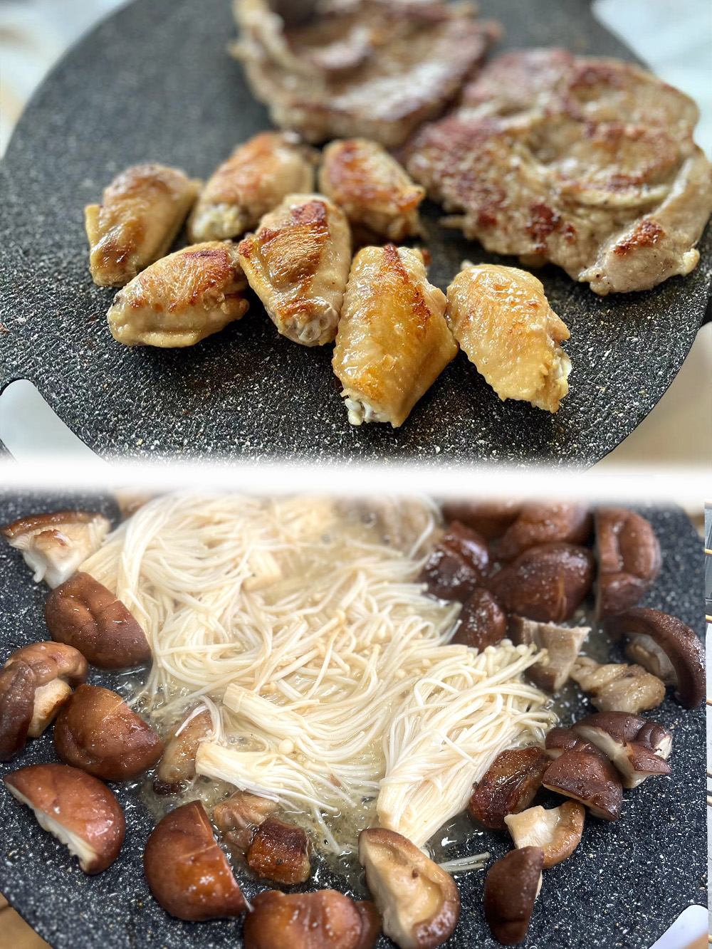 潮汕牛肉丸、豆腐皮串、玉米、茄子、韭菜、金针菇、鲜冬菇、大瓶可乐/雪碧....碗筷都有提供。🍖🌽