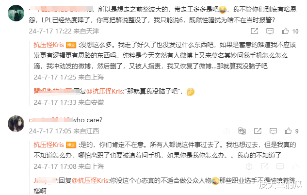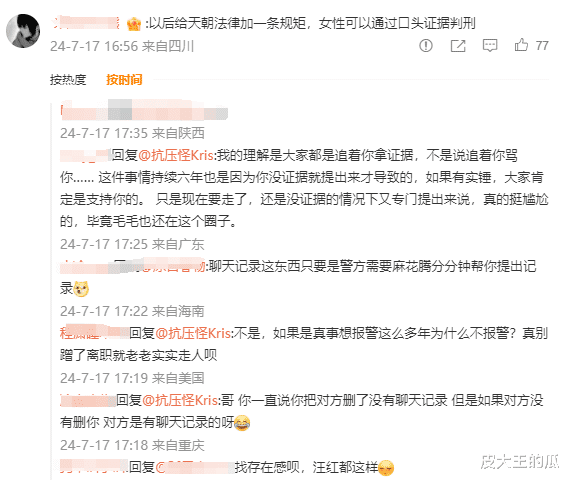 不过对此网友们多数还是站在王多多这边的,有网友表示Kris就是在找存在感,而且也有网友十分理性的表示:不是网友追着骂你,而是这件事情持续六年了你还没有证据,如果有实锤的话,大家肯定是支持你的,现在离职了,没有证据又来说,真的很尴尬。