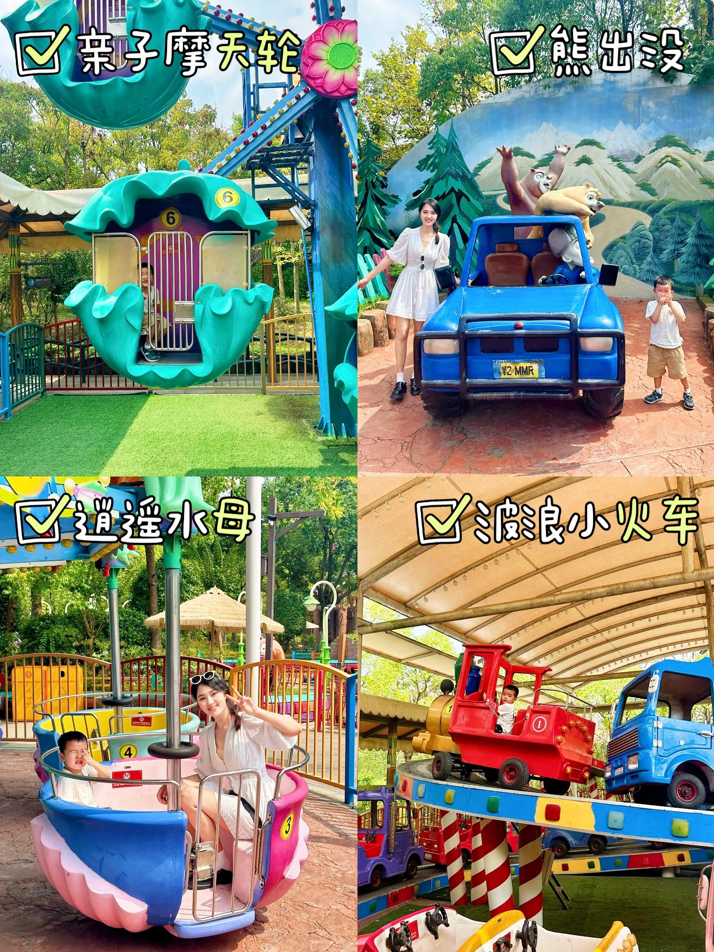 ➡️玩各种小型项目:双层旋转木马、森林驾校、开心蛙蛙跳、亲子摩天轮、音乐快车…