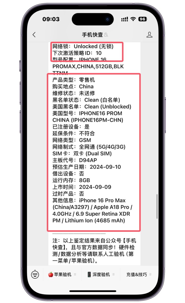 该机其他数据正常,比如无隐藏ID、零售机、国行、未送修等等。这种机器非常多,很多网店都在卖。大家买的时候一定要注意,不要被商家的专业话术给忽悠了,一定要有自己的判断。