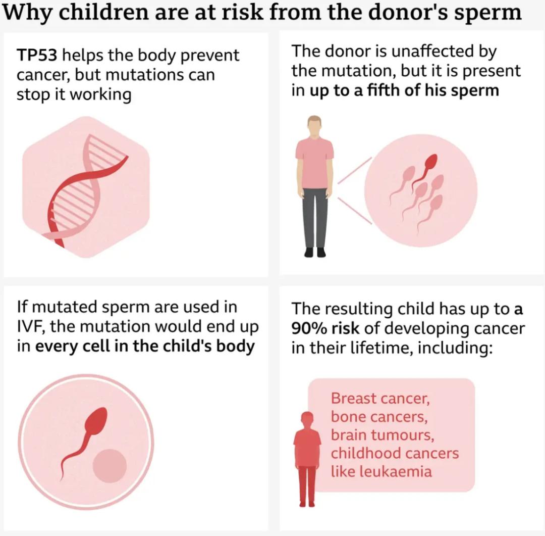 这已经足够引发争议,但,在这个故事里,真正恐怖的是——这个捐献者的精子里,藏着一个致癌的基因突变。