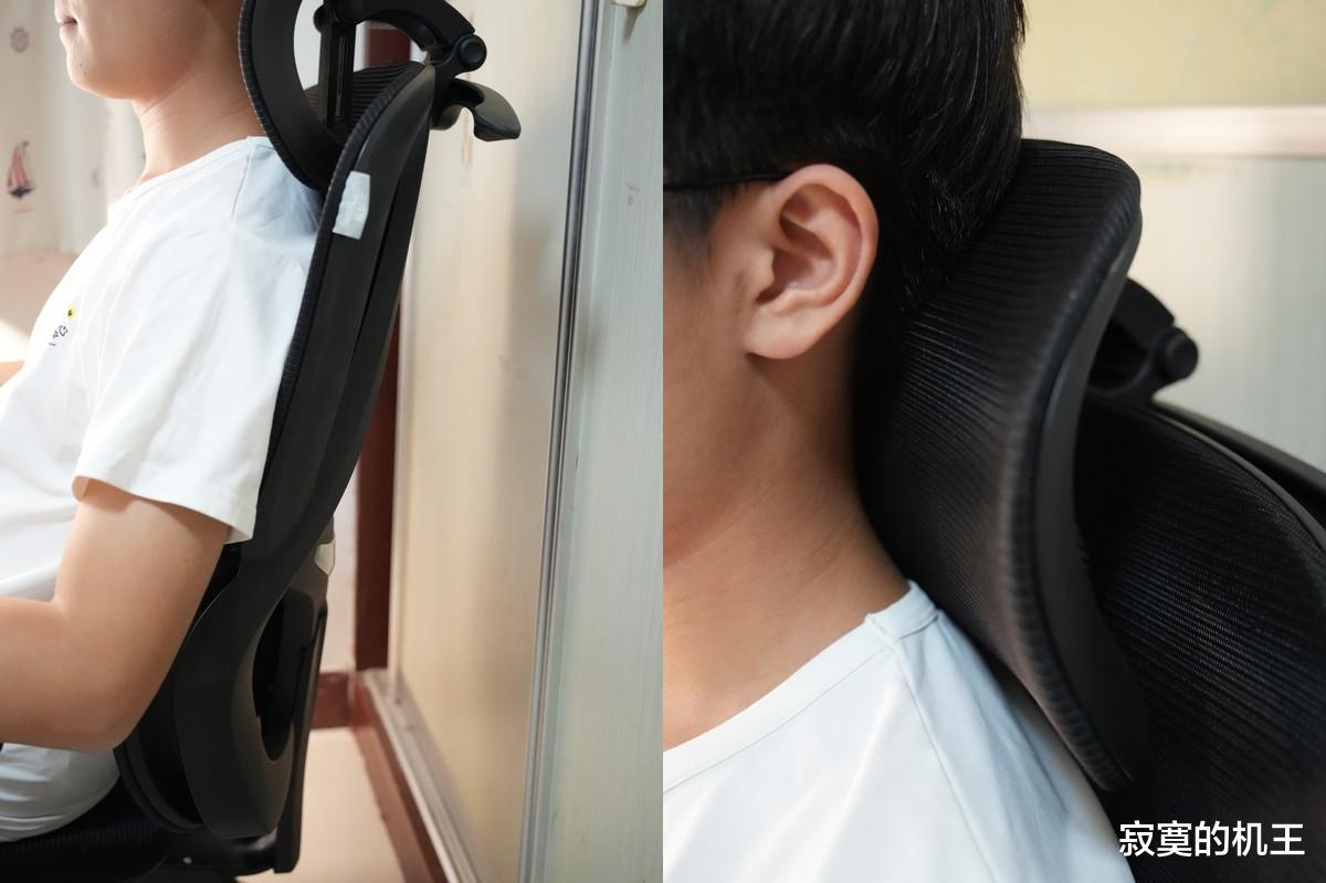 夏草木Fit2人体工学椅的细节还要数头枕的设计,这可不是固定的,而是可调节的,能让用户根据不同场景使用去调节,保证头颈方面的舒适度。