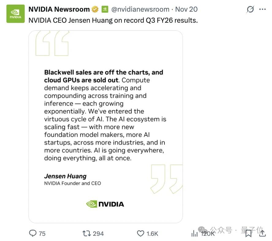 参考链接:[1]https://x.com/andrew_n_carr/status/1993418458877641208?s=20[2]https://www.semafor.com/article/11/25/2025/google-is-coming-for-nvidia[3]https://www.theinformation.com/articles/google-encroaches-nvidias-turf-new-ai-chip-push[4]https://www.businessinsider.com/jensen-huang-market-nvidia-quarter-meeting-2025-11