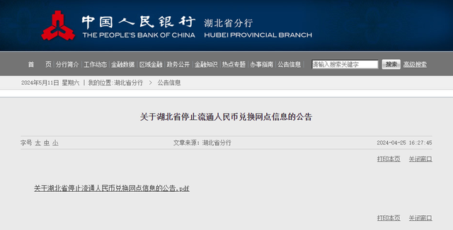 以湖北省的公告为例,在4月25日的这份公告中,提到了最新的退市人民币兑换网点,一共有140个指定网点,可以把退市人民币换成流通人民币。
