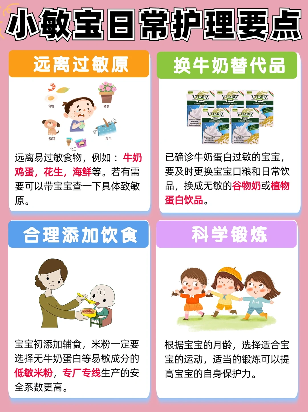 1、避免奶类过敏源:0-3岁中国宝宝常见对牛奶过敏可能出现皮疹、鼻炎、呕吐、xiao喘、腹泻等反应。家长对食品an全千万要重视起来!