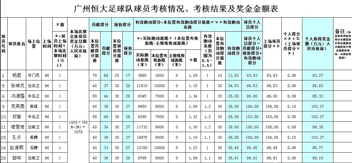 满足好奇心!中超球队如何发放赢球奖金?金元时代的广州恒大,其KPI既简单又复杂,值得参考么?[what][what] 亚冠首秀狂赚1400万元奖金,核心球员赚得盆满钵满了。 李章洙112万元,孔卡和克莱奥各有103.27万元,郑智102.27万元。 一场比赛,净赚百万,老百姓怎么搞百万? [笑哭][笑哭][笑哭] 从KPI来看,跑动距离真的很要命。 不是说瞎跑,而是有效率地跑。 体测没有了,但中国球员的体能呢? 年纪轻轻,经常抽筋。 唉…… 恒大,从顶峰跌落山谷,令人唏嘘。 只是其管理依然是顶级。 无论如何诟病,好就是好,坏就是坏。 恒大取得的成绩和荣耀,金钱固然重要,管理也不可或缺。 如果其它球队也有这种魄力,何必如此难堪。
