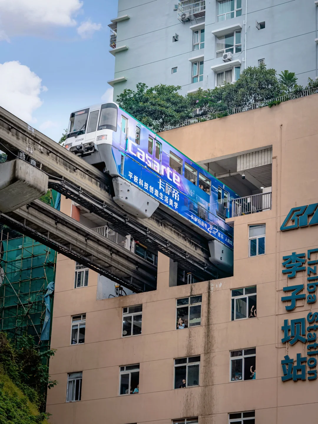 4️⃣大溪沟站:电影感与动漫感并存,大溪沟轻轨站好像是从二次元里走出来的,如果你时间够的话可以在这等两辆列车相遇的场景更有画面;