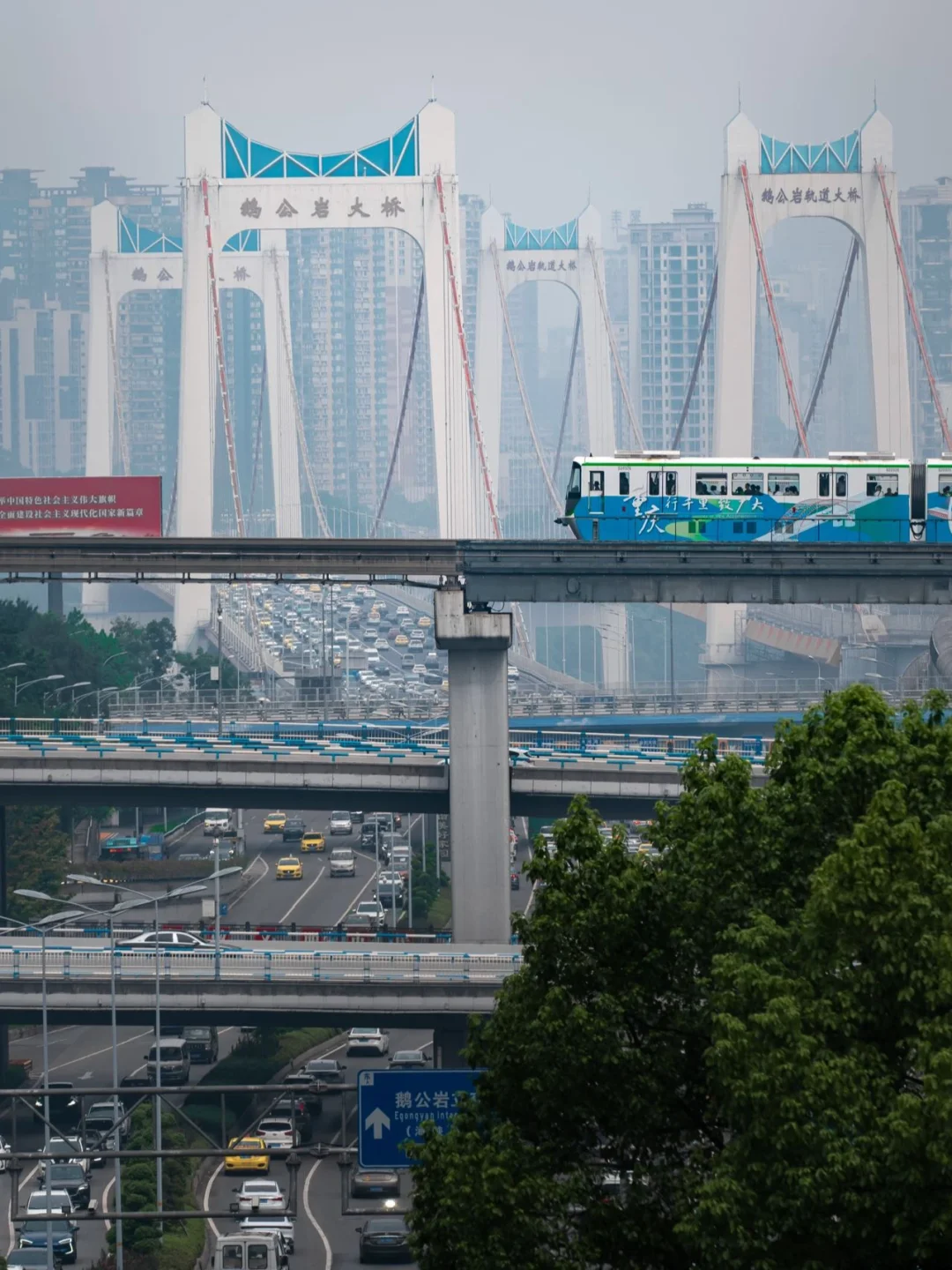 6️⃣鹅公岩大桥:导航到谢小路和龙腾大道交叉口,从两旁的人行步到上天桥,日出时分晨辉照耀下是拍照的最佳时刻,建议提前关注天气预报与日出时分,早上有日出再有薄薄的晨雾哪就更有味道了;