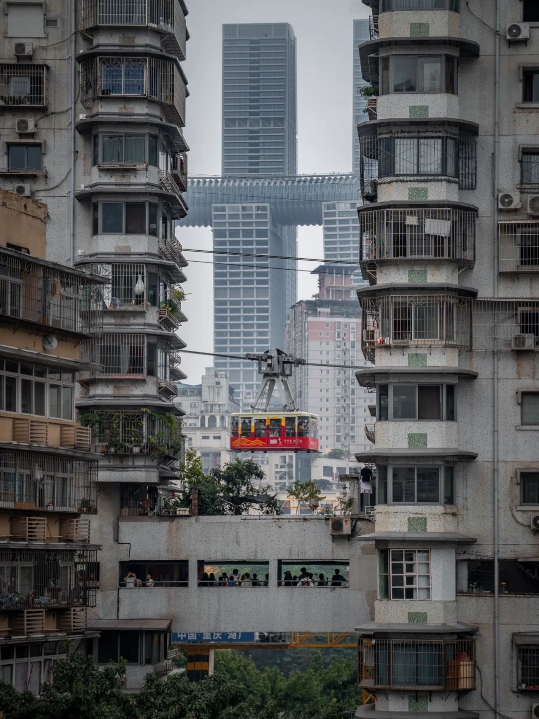 7️⃣李子坝:李子坝轻轨穿楼,大概是很多人来重庆旅游的目的地之一,但同时也导致了李子坝楼下观景台人是真的多,如果你感觉在李子坝楼下不好拍,不妨试试这个机位,导航到大田湾小学,到了正门后顺着左侧的道路走到尽头看到“揽胜”亭即到,这个角度是拍李子坝的最佳机位了;