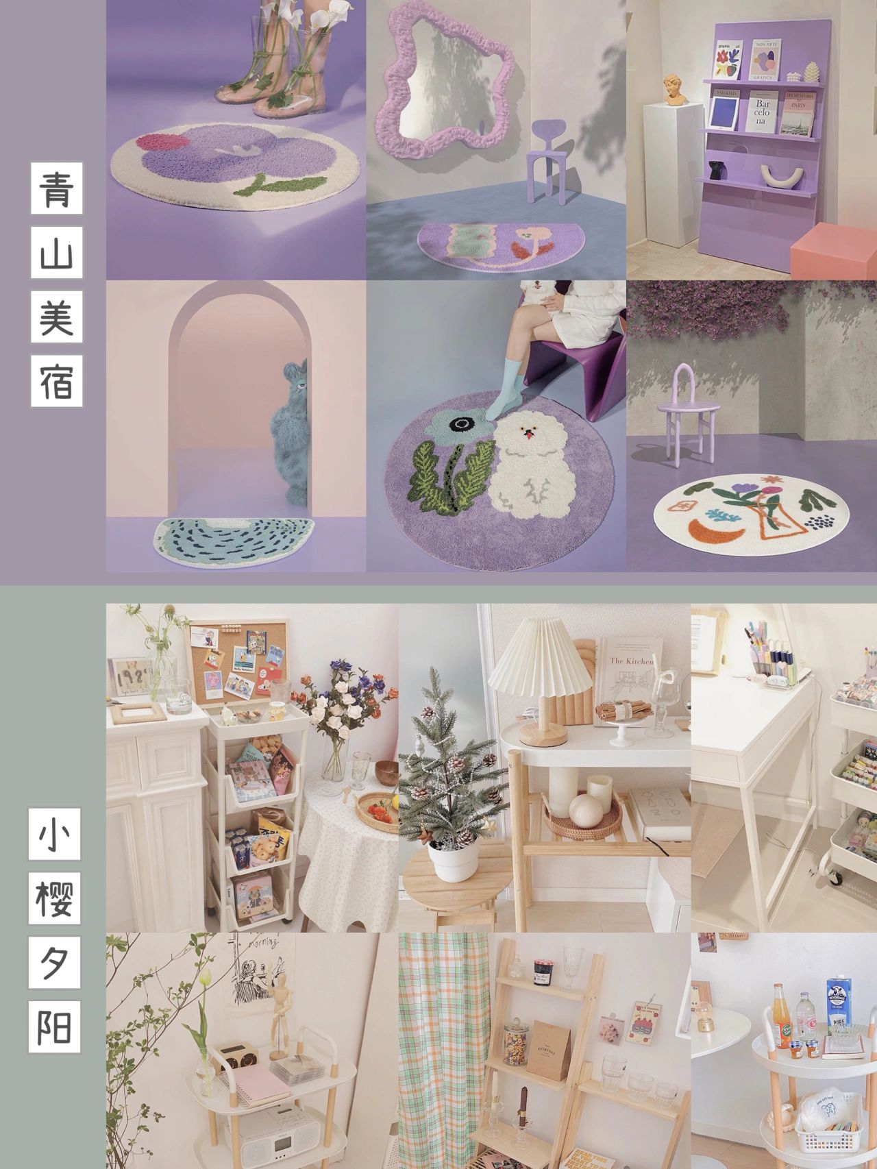 1️⃣3️⃣【青山美宿】浪漫的紫色调调,地毯多以卡通图案为主,加上有趣的造型,怎么看怎么美。