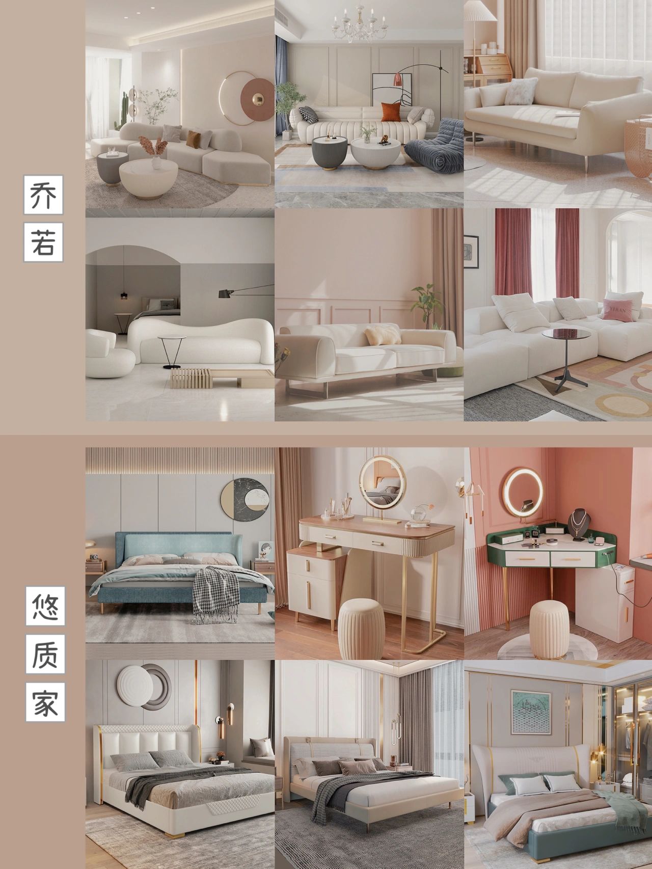 9️⃣【乔若】温柔奶油风沙发,以白色和杏色为主,弧度流畅,舒适度不错!