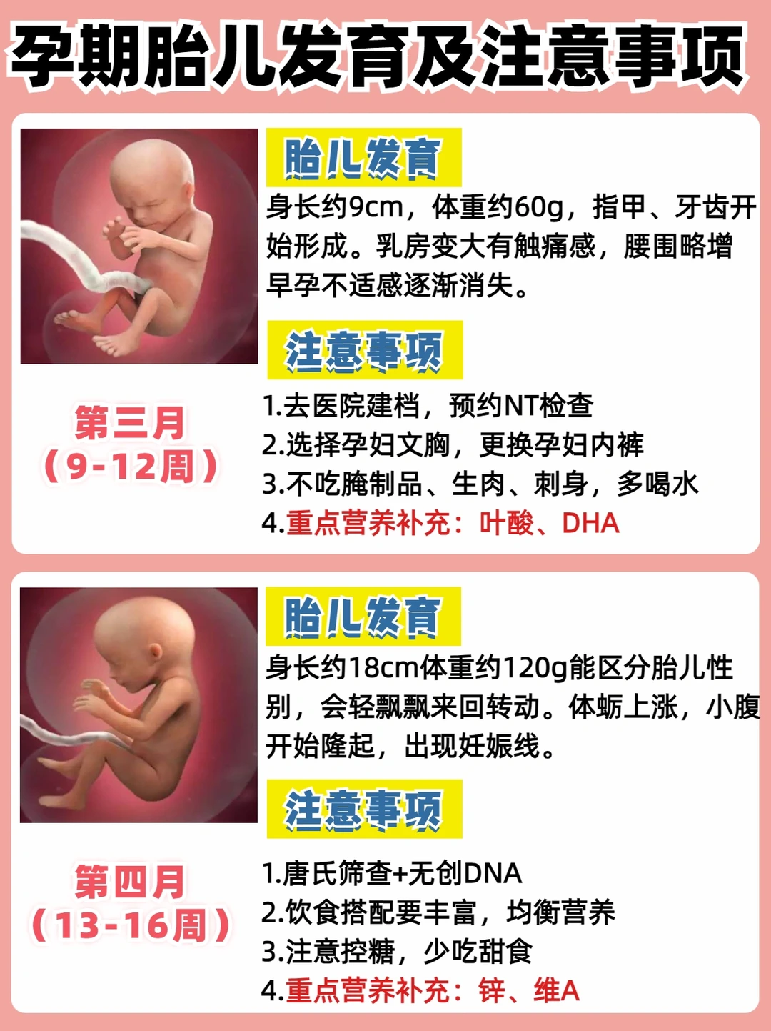 1.蛋白质的补充,孕前3-6个月开始多吃优质蛋白,如鱼肉,鸡肉,牛肉,虾等