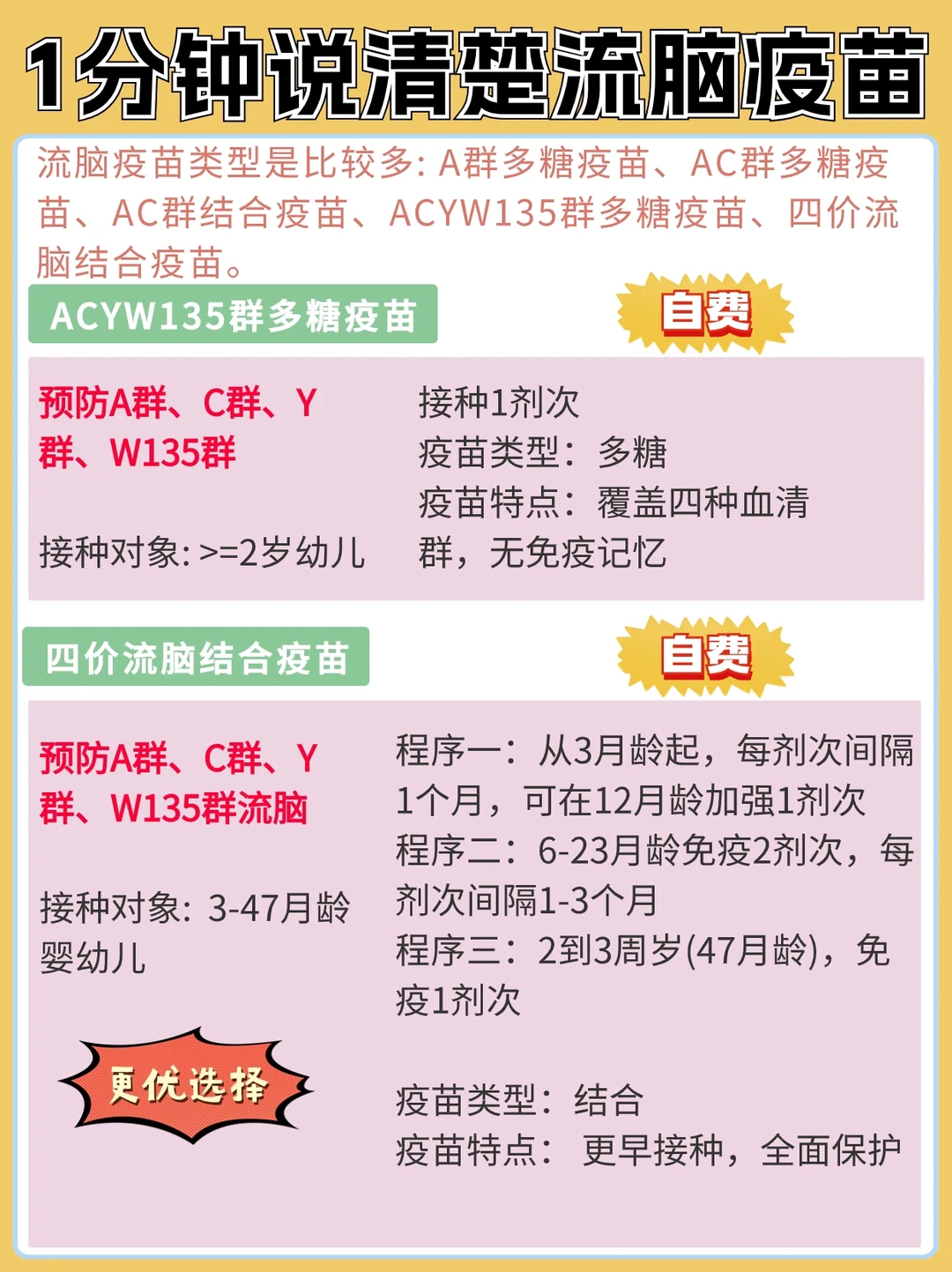 特别是流脑疫苗,毫不夸张地说,可谓是目前宝宝疫苗里面蕞烧脑🧠的疫苗了!我也是前后做了将近二十天功课才整明白,然后给宝宝接种的国内目前唯一的四价流脑A、C、Y、W135群结合疫苗。查的时候比来比去,结论就是真香[集美R]!一定要打四价流脑结合疫苗,它是目前对宝宝预防流脑蕞全的疫苗!以前有的人甚至还会跑到国外去打,现在可具体问问社区yi院🏥。其他疫苗就不解释了......资料很多,可以自己🔍一下。