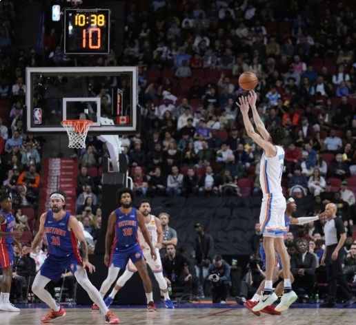 活塞在NBA季前赛加拿大系列赛中逆转战胜雷霆。最终比分活塞128-125雷霆