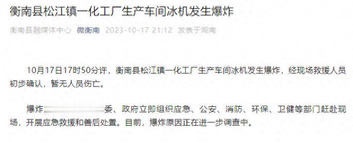 突发:湖南衡阳一化工厂爆燃!为何车间冰机会爆炸?威力究竟多大 湖南衡阳一化工厂发生火灾,初步调查发现原因是车间冰机发生爆炸,可能是由于冰机内部液体泄漏或质量问题导致。冰机爆炸的威力很大,可能会导致严重的后果。在使用冰机时应注意安全,定期检查维修,避免将易燃物品放置在冰机附近。