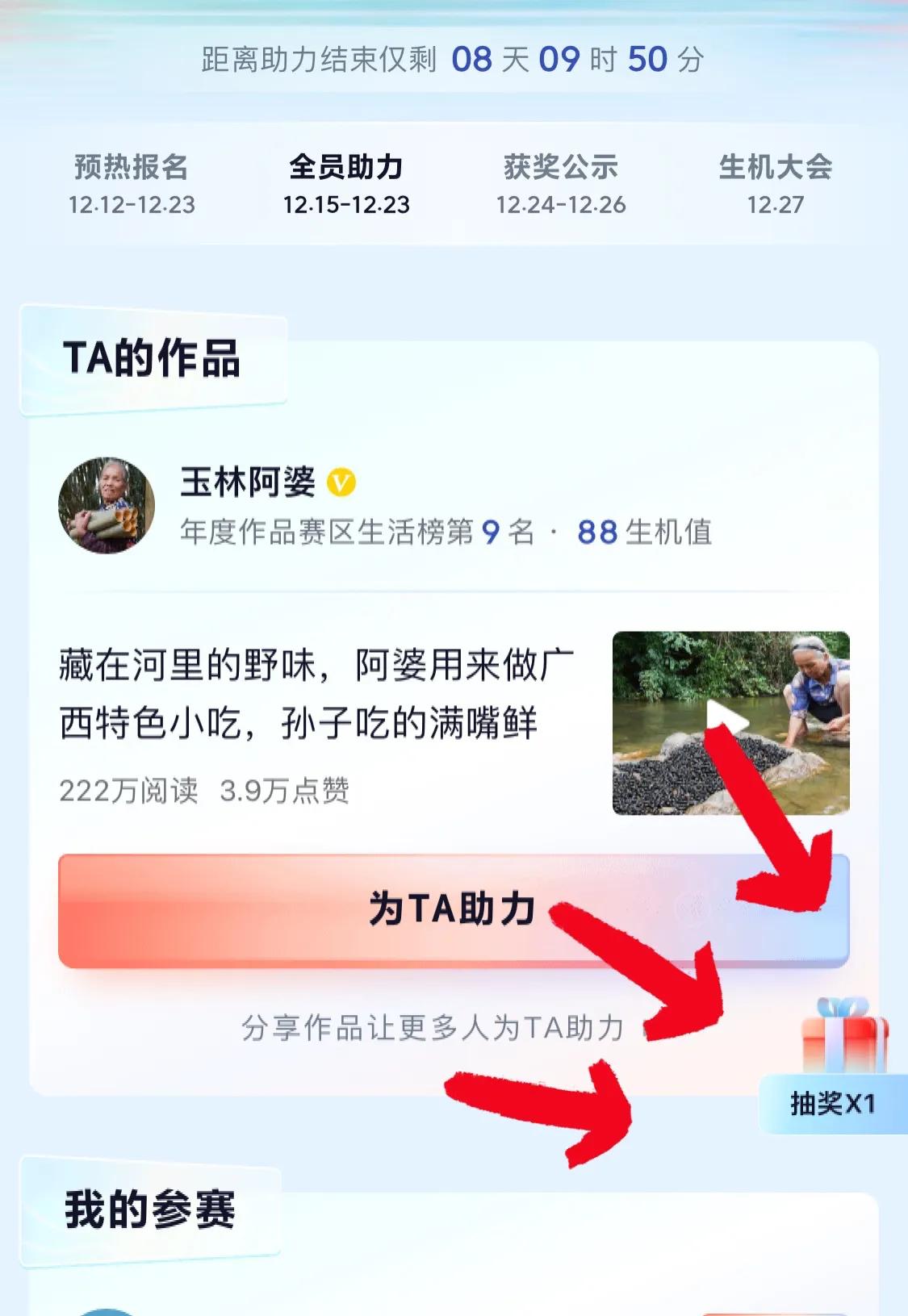 2022生机大会阿婆又来提醒大家了,你们手里的票今天又刷新了[狗头],接下来还剩5天的投票时间,希望大家多多帮阿婆投票,虽然很难和大v比,冲到第一名,但是往前靠一点也好,让我们一起加油。大家每天手里都会更新8票[喝彩]。