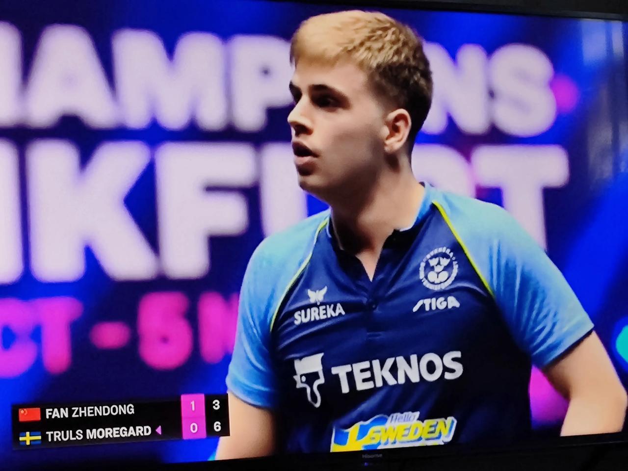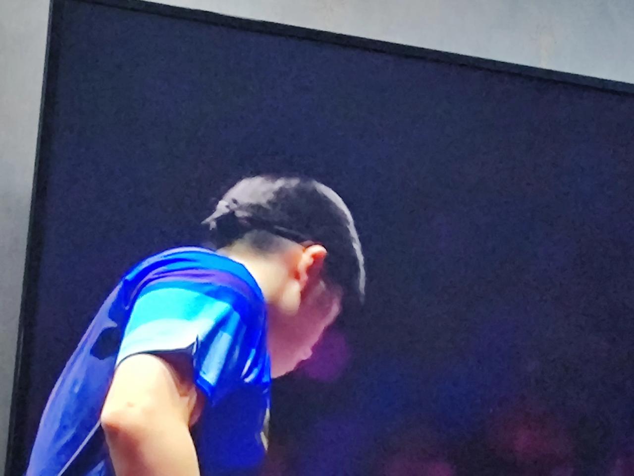 扎了蝴蝶结的小胖,汗是少了,球技受了影响。和小莫打得天昏地暗。虽然3-1赢下比赛,从比分看还是比较艰难12-10、11-13、12-10、11-7。不得不说,打过乒超联赛的小莫也涨球了。