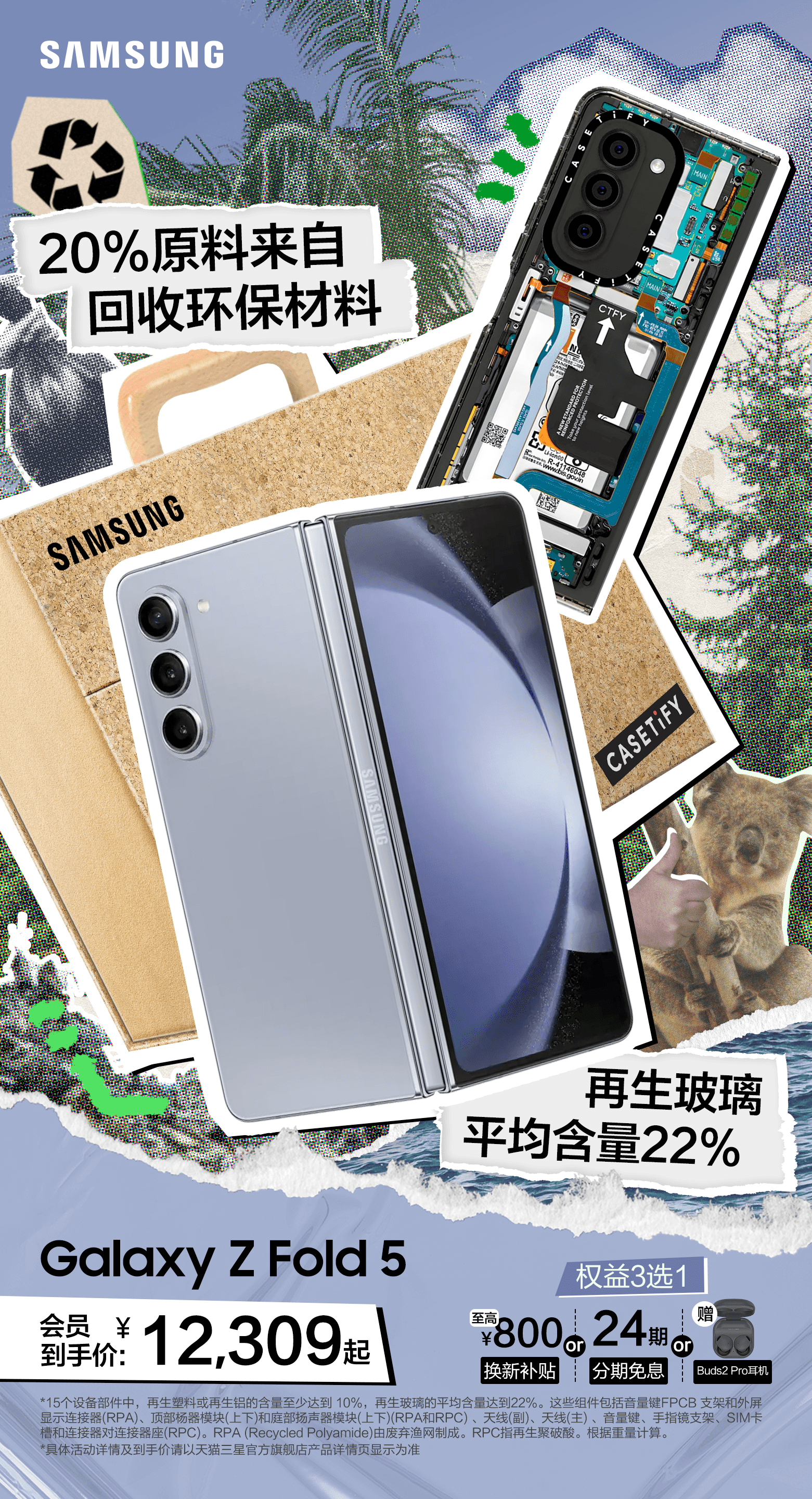 不得不夸一下,手机壳和环保软木手提箱都是环保材料,以此倡导大家都来爱护我们的环境。这也和三星品牌的环保理念,Z Flip5的可持续性设计相契合。