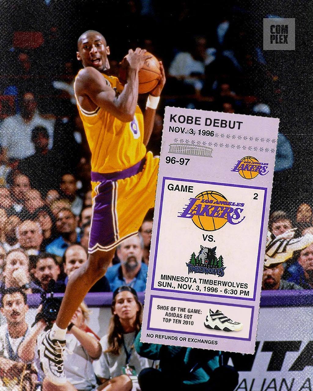 1996年的今天,时年18岁的科比完成湖人首秀,开启20年的NBA生涯